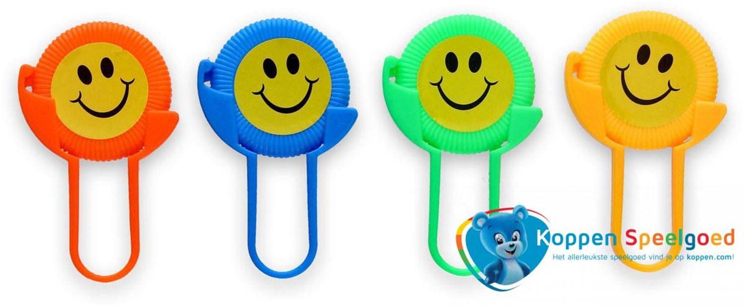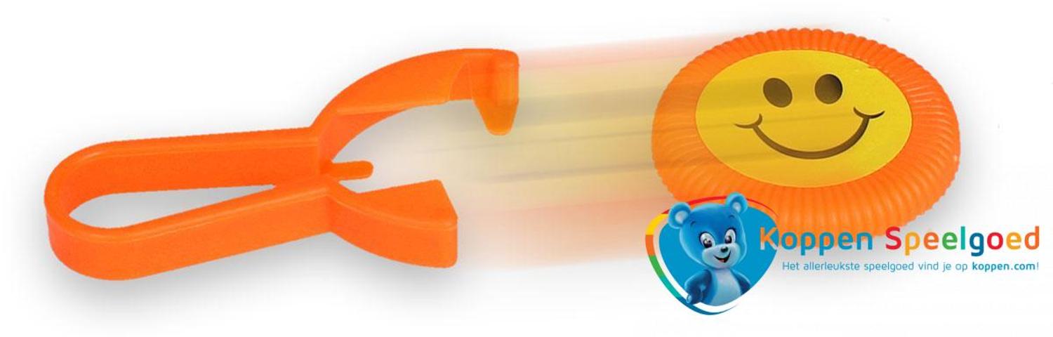 Deze frisbee met een smile kan je afschieten uit de houder.