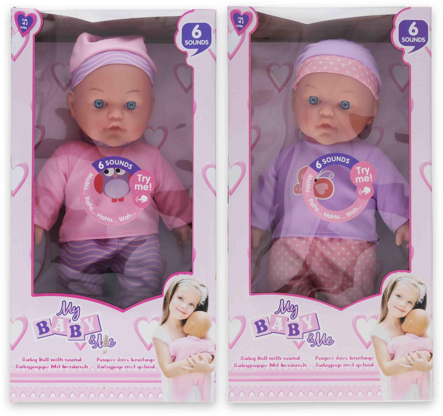 De baby maakt 6 geluiden: lacht, huilt, zingt, zegt papa, mama.