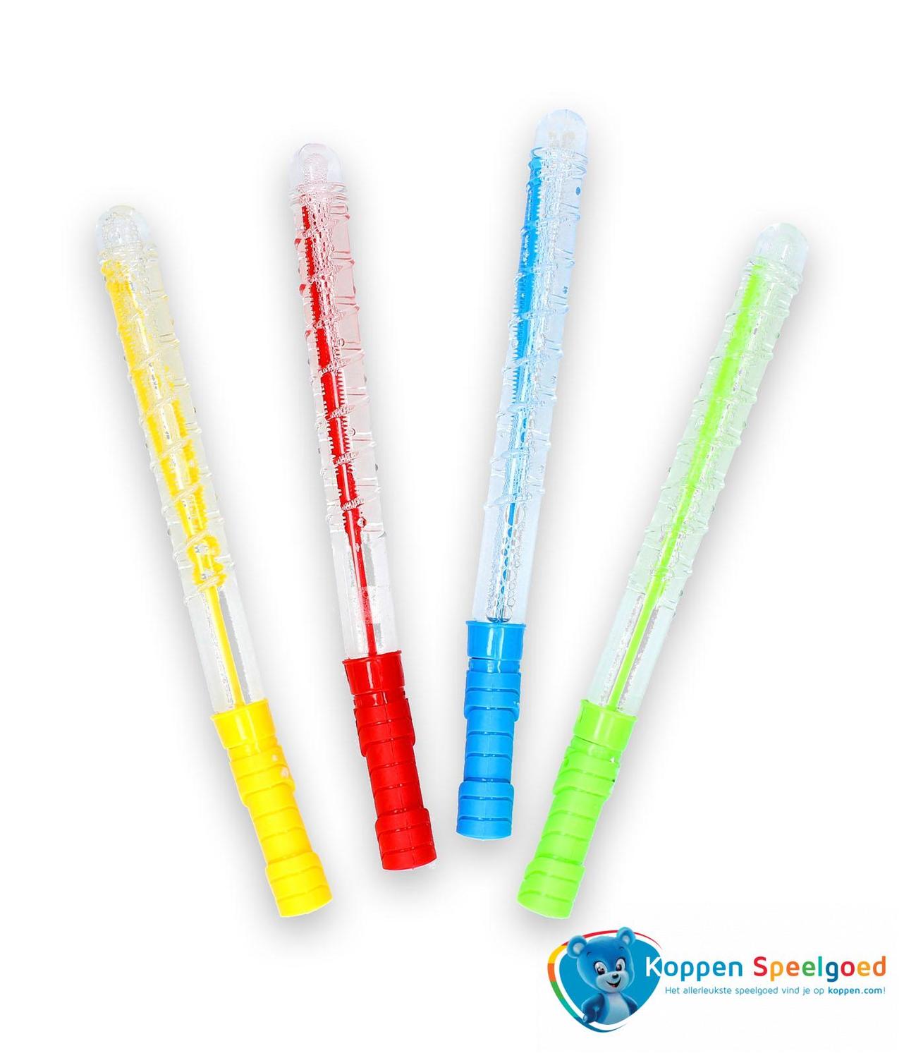 Bellenblaas zwaard. Een bellenblaas in een gekleurd zwaard. De verschillende kleuren worden door elkaar geleverd. Het zwaard is 30 cm. Geschikt voor kinderen vanaf drie jaar. Leuk zomer speelgoed.