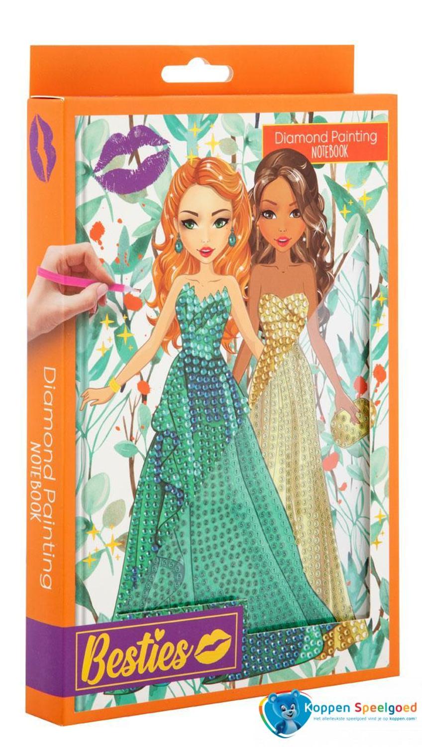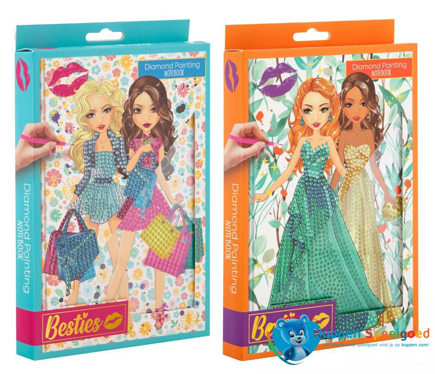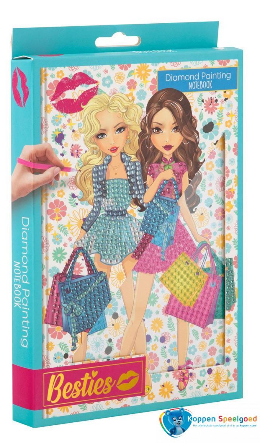 Besties notitieboekje met diamond painting. Dit notitieboek kun je zelf versieren met de meegeleverde diamantjes. Gereedschap zit erbij.