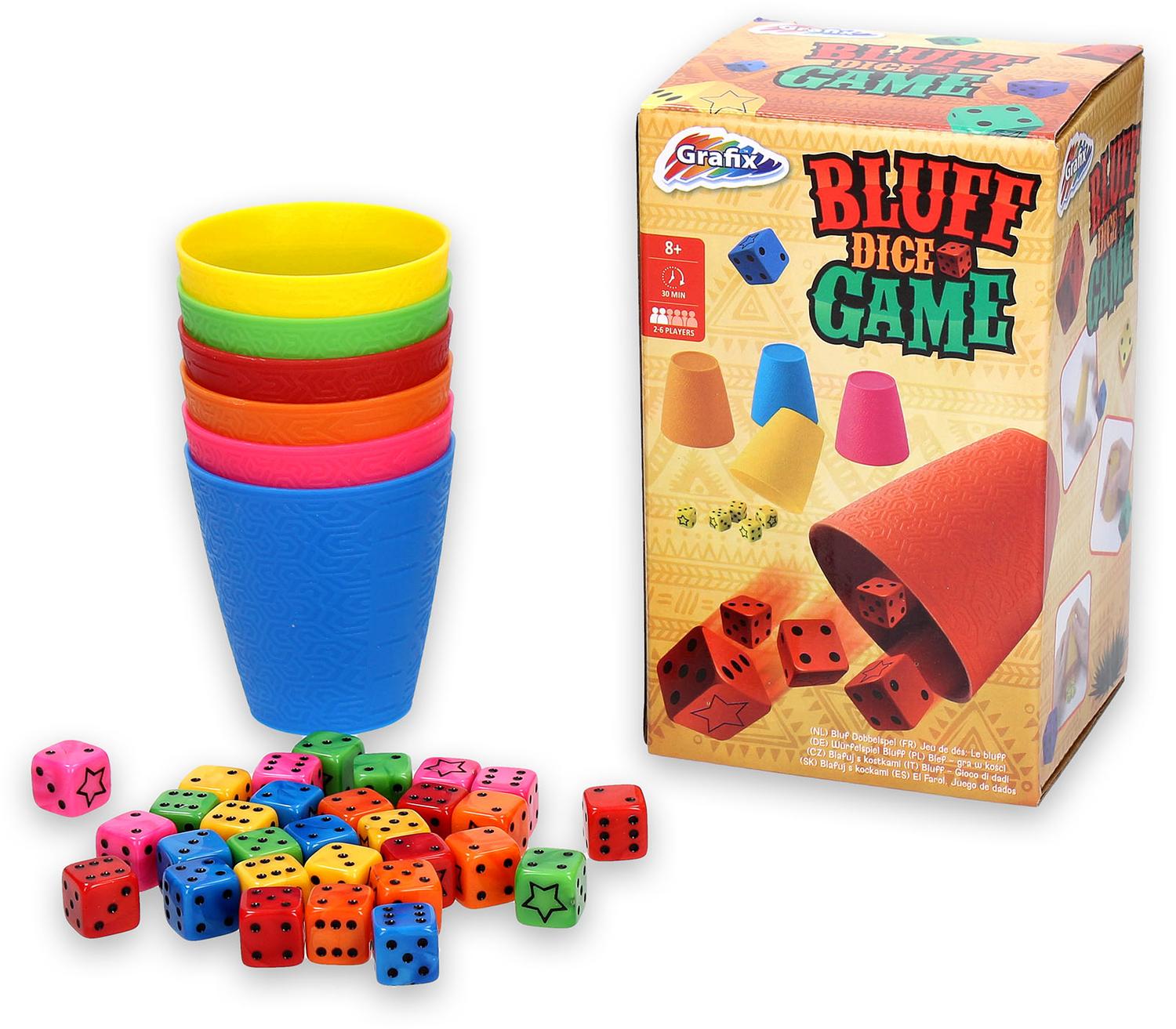 Iedere speler krijgt een beker met 5 dobbelstenen in een kleur naar keuze. Tegelijkertijd schudden alle spelers de dobbelstenen in hun eigen beker en plaatsen de beker ondersteboven op tafel. Iedere speler kan door de beker op te tillen alleen zijn eigen dobbelstenen zien. De dobbelstenen mogen niet zichtbaar zijn voor de andere spelers. Om de beurt moeten de spelers gaan 'bieden', door bijvoorbeeld te zeggen dat er minimaal 5 dobbelstenen met 2 ogen onder alle bekertjes liggen. Vervolgens mogen de andere spelers beslissen of je bluft of niet. Liggen er minder dobbelstenen dan verwacht? Dan moet je 1 dobbelsteen inleveren.