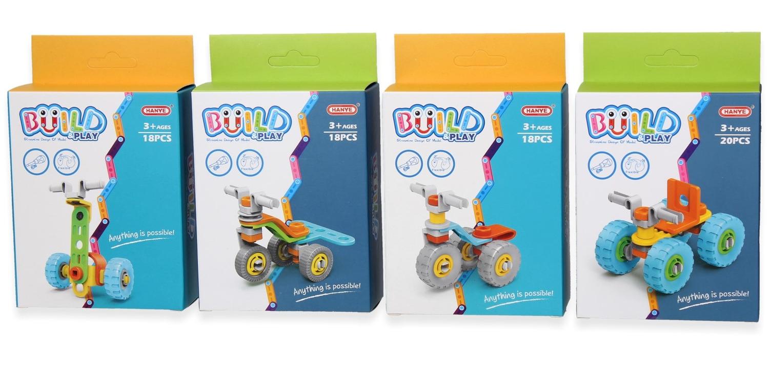 Bouw en speeldoosje voertuigen. Zet zelf het voertuig in elkaar door de stappen te volgen. Er zijn verschillende voertuigen en deze worden door elkaar geleverd.