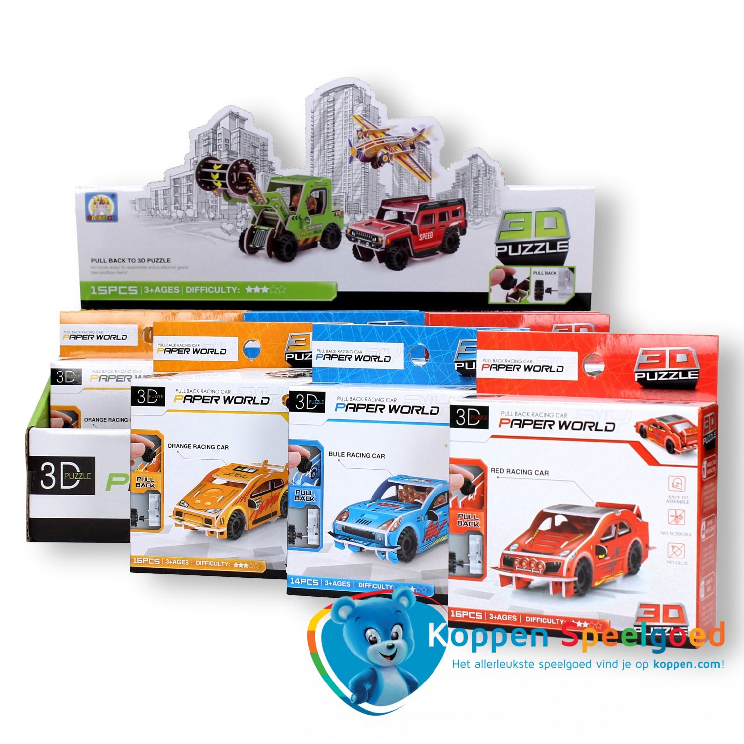 Bouw je eigen race auto. Zet zelf de race auto in elkaar. Er zijn verschillende kleuren en deze worden door elkaar geleverd.