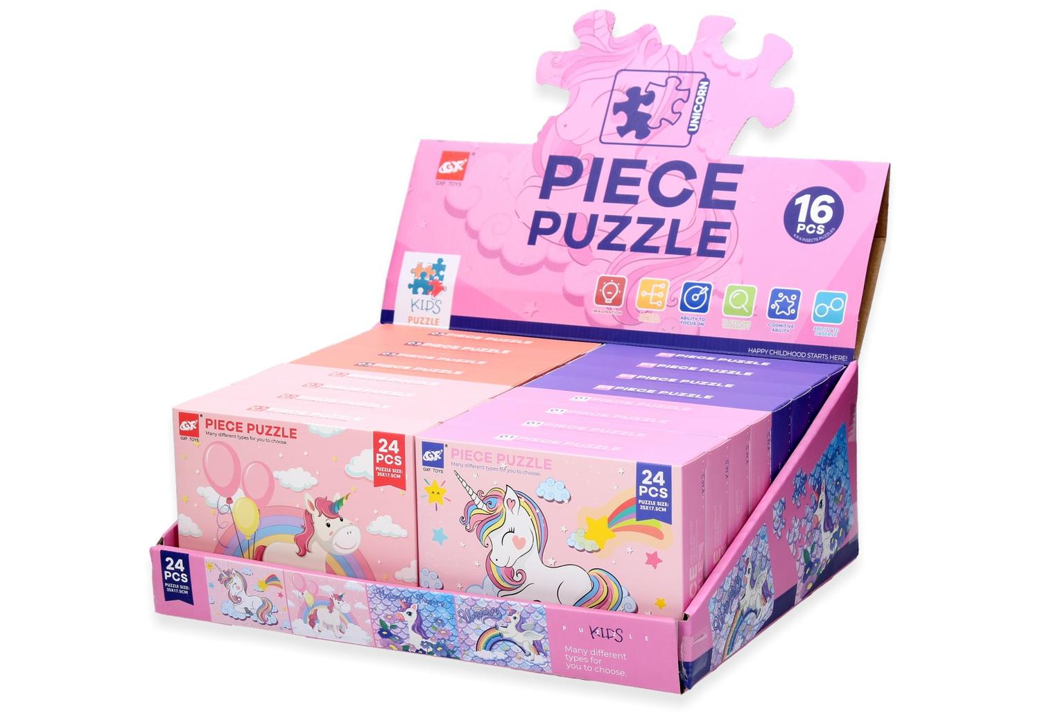 Laat kinderen wegdromen in een magische wereld met deze kleurrijke eenhoorn puzzel van 24 stukjes. De puzzel is speciaal ontworpen voor jonge kinderen vanaf 3 jaar en stimuleert de fijne motoriek, concentratie en het probleemoplossend vermogen. Door het vrolijke eenhoornthema en de heldere kleuren is dit een ideaal cadeautje voor kinderdagverblijven, basisscholen of als toevoeging aan een menubox. Het compacte formaat maakt de puzzel perfect voor onderweg of als kleine beloning.