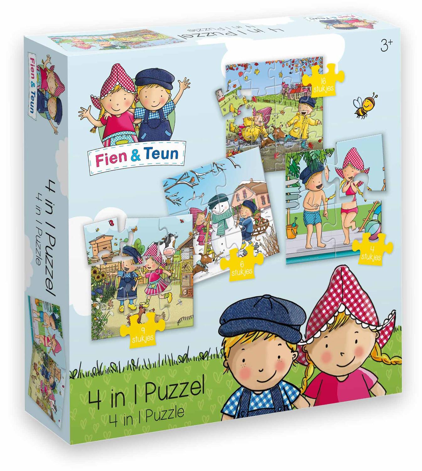 Deze set bestaat uit 4 puzzels met elk een kleurrijke afbeelding uit de serie Fien & Teun, tijdens de verschillende jaargetijden lente, zomer, herfst en winter. Puzzelen is een van de eerste bezigheden waarmee een kind de motoriek traint. De jongste puzzelaars beginnen met een puzzel van 4 stukken en wie toe is aan de volgende uitdaging kan een puzzel van 6, 9 of 16 stukken leggen.