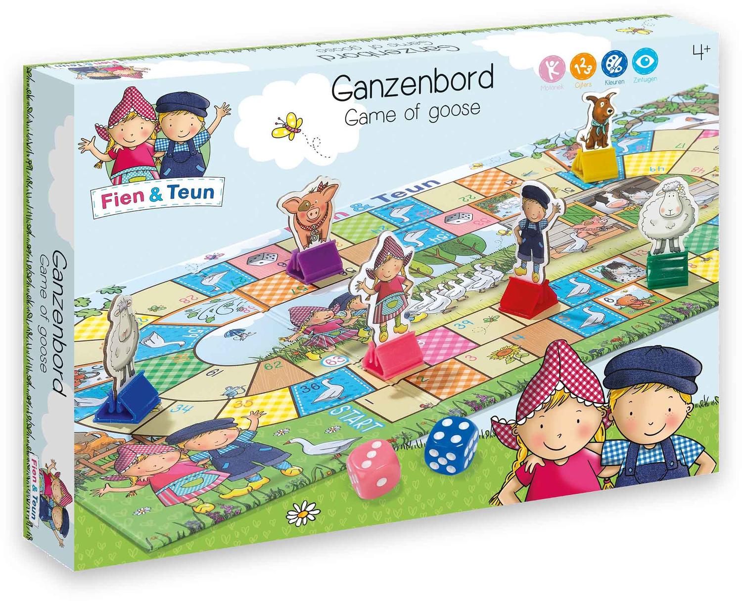 Breng de gezelligheid van het klassieke ganzenbord naar jouw woonkamer met het Fien & Teun ganzenbord! Dit vrolijke gezelschapsspel is perfect voor het hele gezin. Samen met Fien, Teun, Pim de hond, Sebastiaan het varken, Mike en Molly ga je op avontuur door het boerderijdoolhof van het speelbord. Wie komt er als eerste bij de finish aan?