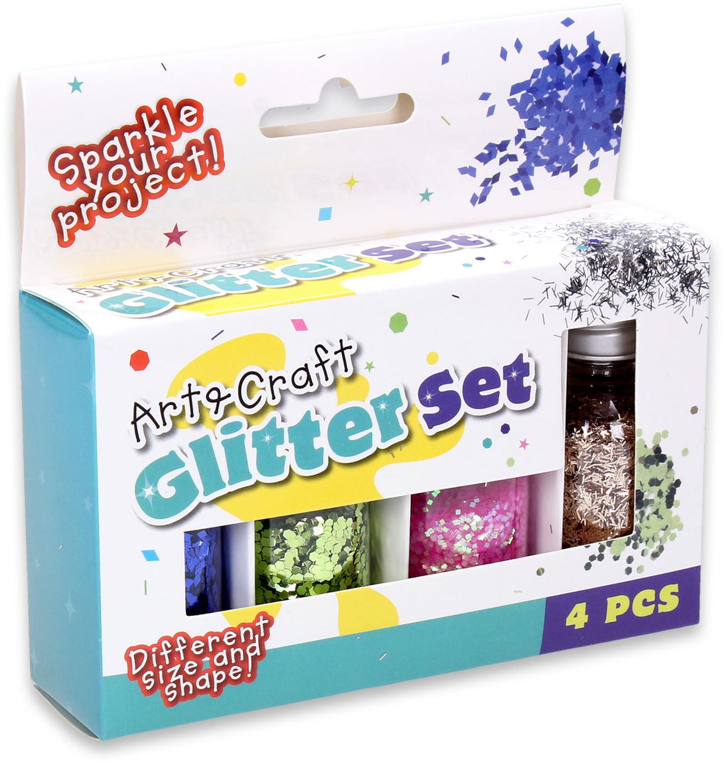 - Glitter in fles, 4 kleuren