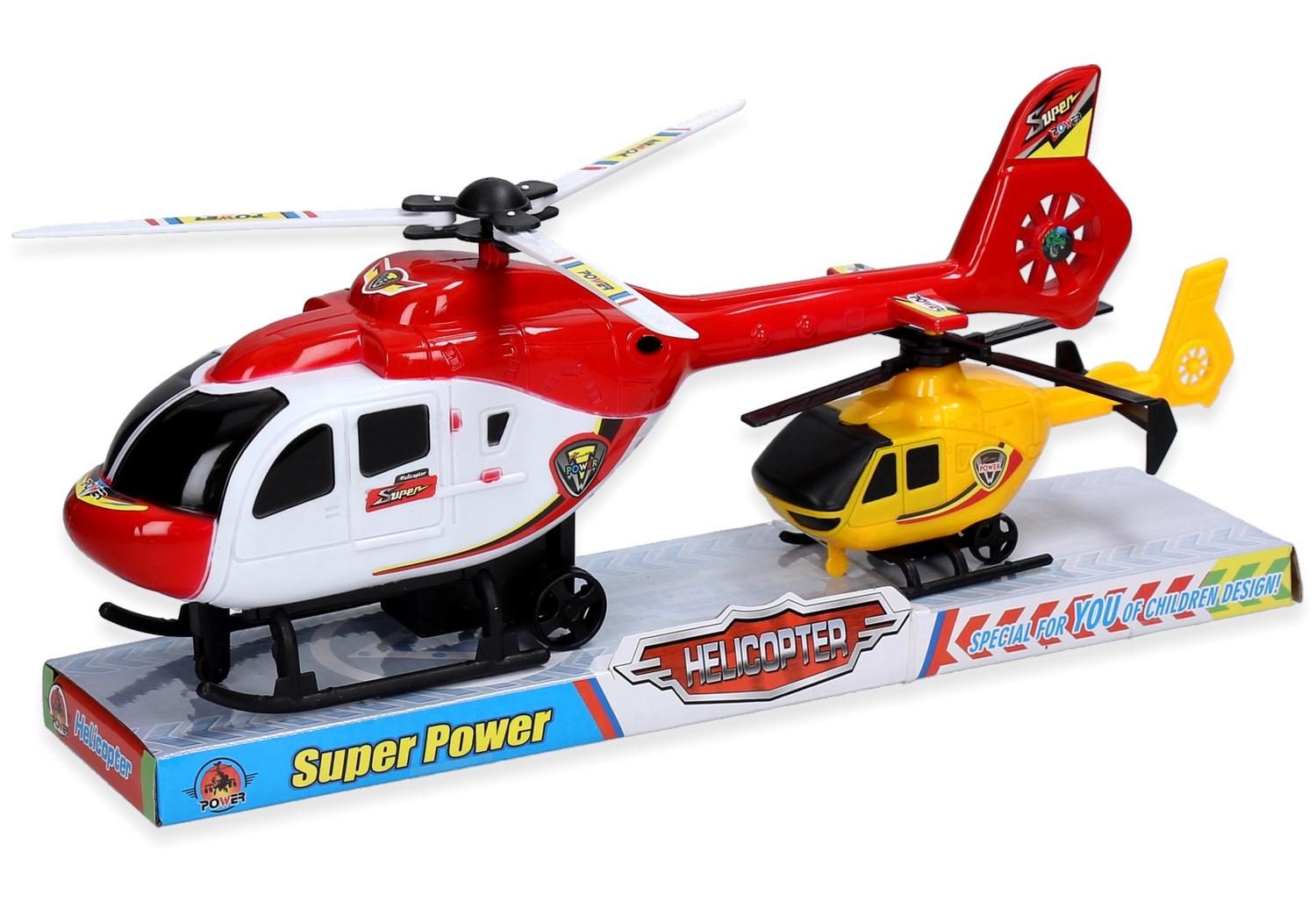 De grote helikopter is robuust en gedetailleerd, perfect om indrukwekkende reddingsmissies uit te voeren of gewoon voor de lol rond te vliegen. De kleine helikopter is compact en handzaam, ideaal voor jongere kinderen of voor onderweg.