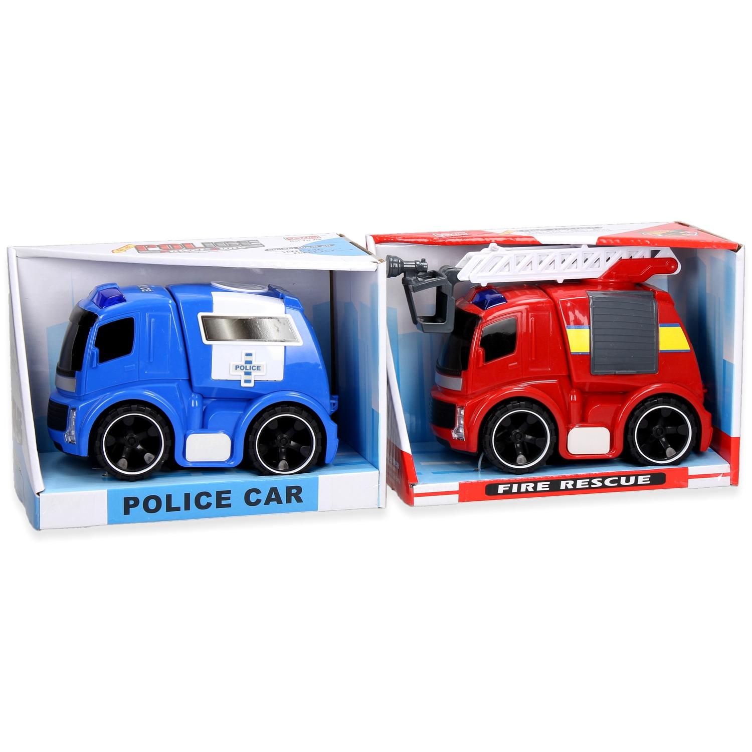 Hulpvoertuig met licht en geluid is een stoere speelgoedauto met realistische functies. Verkrijgbaar in 2 varianten: politieauto (blauw) en brandweerwagen (rood). Beide voertuigen zijn voorzien van licht- en geluidseffecten, waardoor kinderen spannende reddingsacties en achtervolgingen kunnen naspelen. Dankzij de robuuste wielen en stevige kunststofconstructie zijn ze ideaal voor intensief speelplezier. Geschikt voor kinderen vanaf 3 jaar.