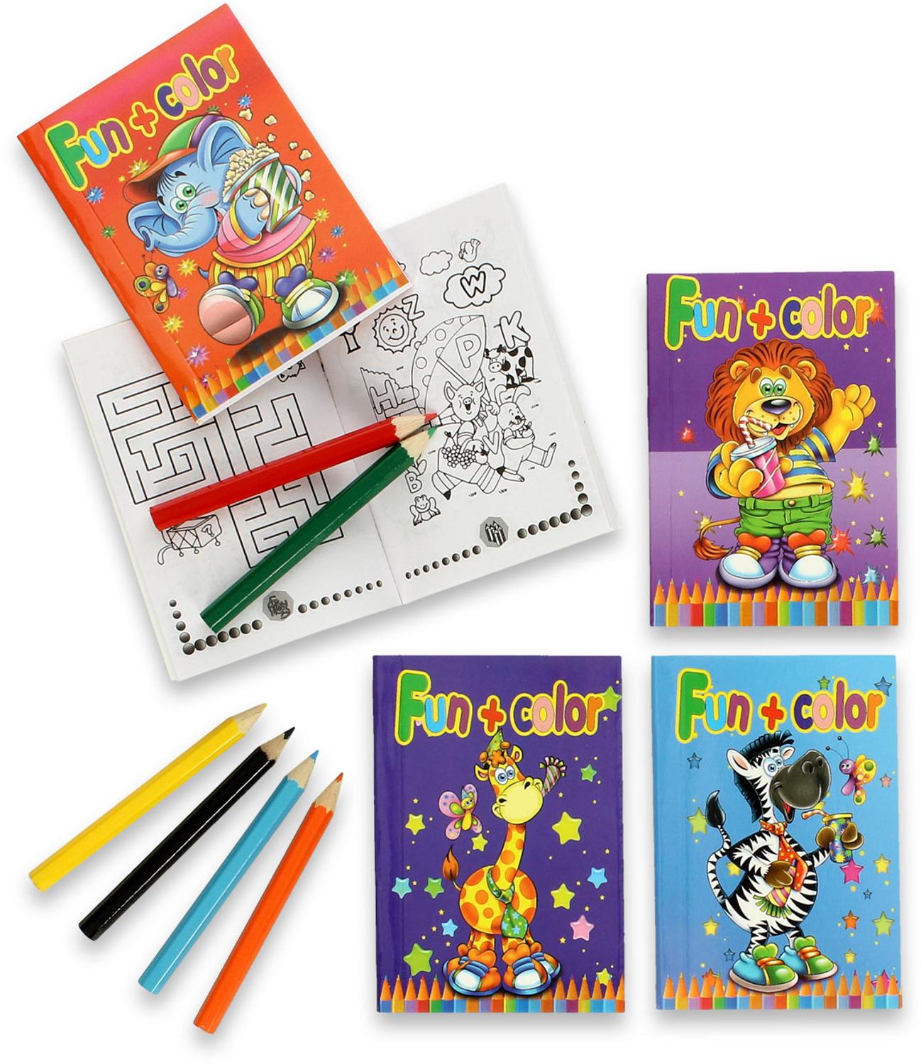 Kleur- en spelletjesboek, 32 vellen. Door het compacte formaat is het boekje makkelijk overal mee naar toe te nemen.