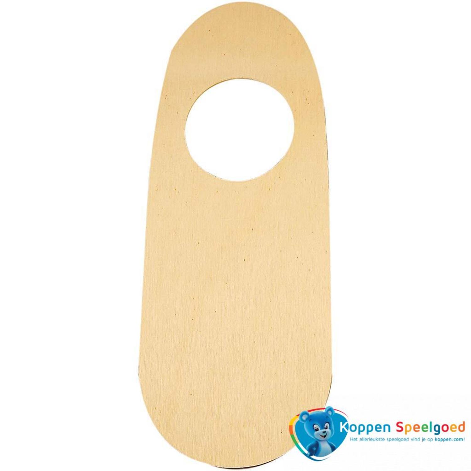 Kleur je eigen deurhanger of naambord, gemaakt van dun hout. Om zelf verder te decoreren en af te werken.