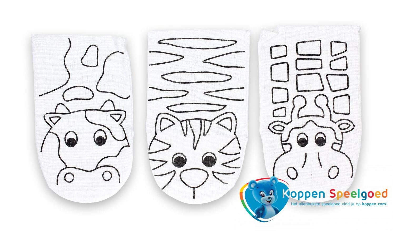 Kleur je eigen handpop. Kleur zelf deze handpop en de kleuren die jij wilt. Er zijn verschillende prints en deze worden door elkaar geleverd. Maak er zelf een mooie show van na het kleuren. Wasbaar tot 40 graden.