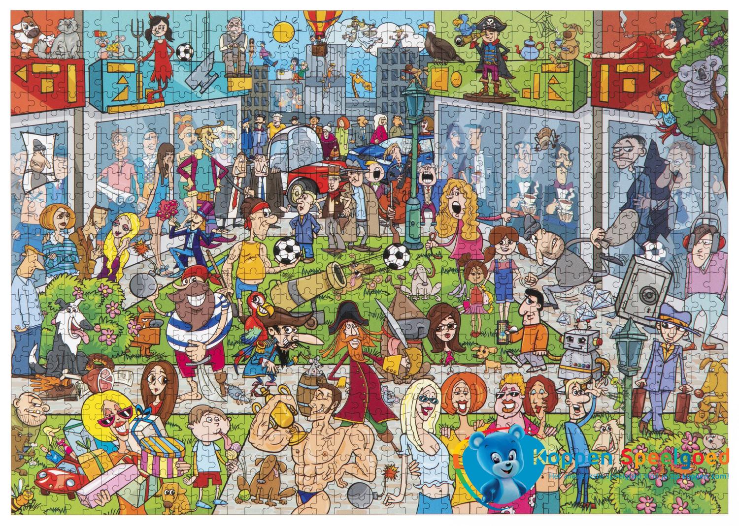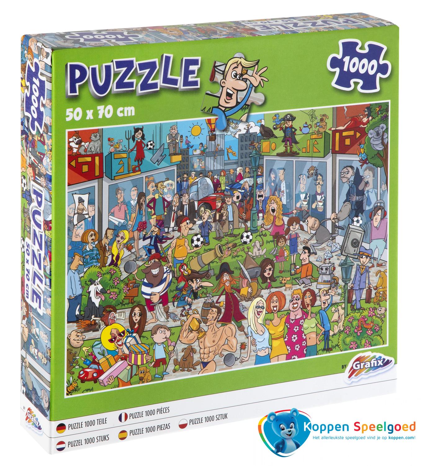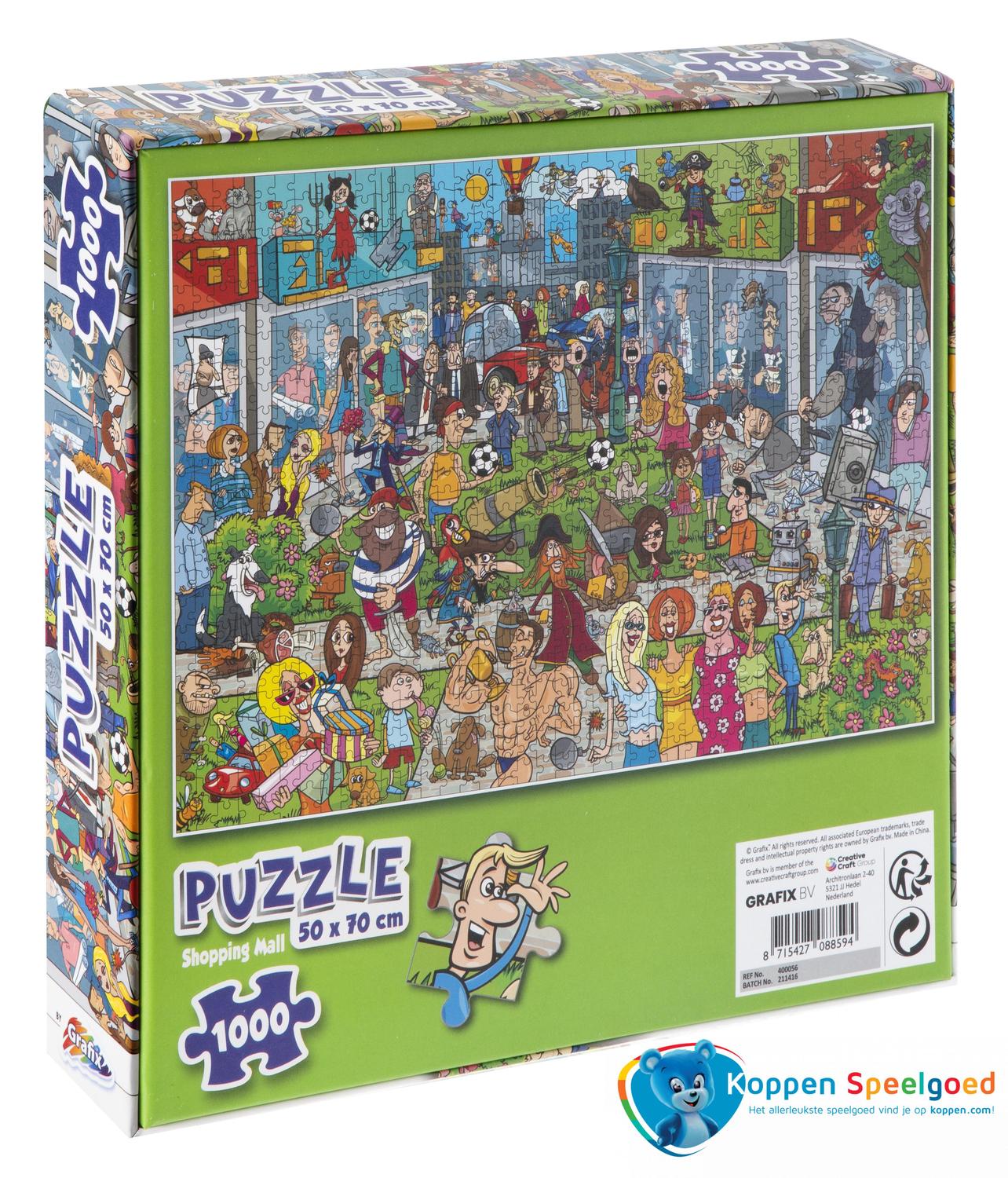 Puzzel voor gevorderden. Voor urenlang puzzelplezier met maar liefst 1000 stukjes. 50 x 70 cm. Het thema is in het winkelcentrum.