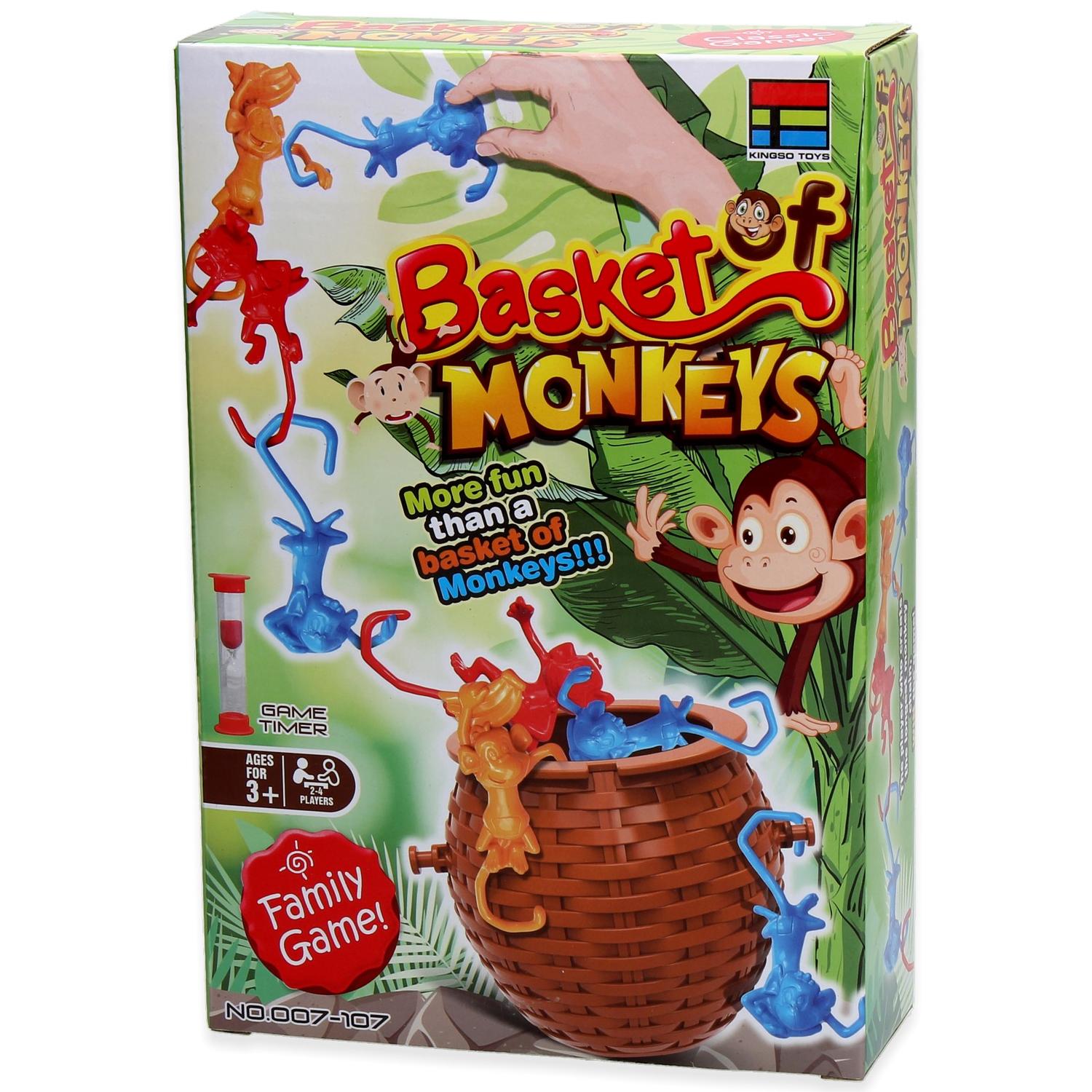 Mand met apen spel is een vrolijk en spannend familiespel waarbij spelers zoveel mogelijk apen aan elkaar moeten haken zonder dat ze vallen. De kleurrijke apen worden in de mand geplaatst en om de beurt proberen spelers een aap te vangen en aan de ketting te hangen. Wie de langste slinger van apen kan maken, wint het spel. Inclusief zandloper om de speeltijd extra uitdagend te maken. Geschikt voor 2 of meer spelers vanaf 3 jaar.