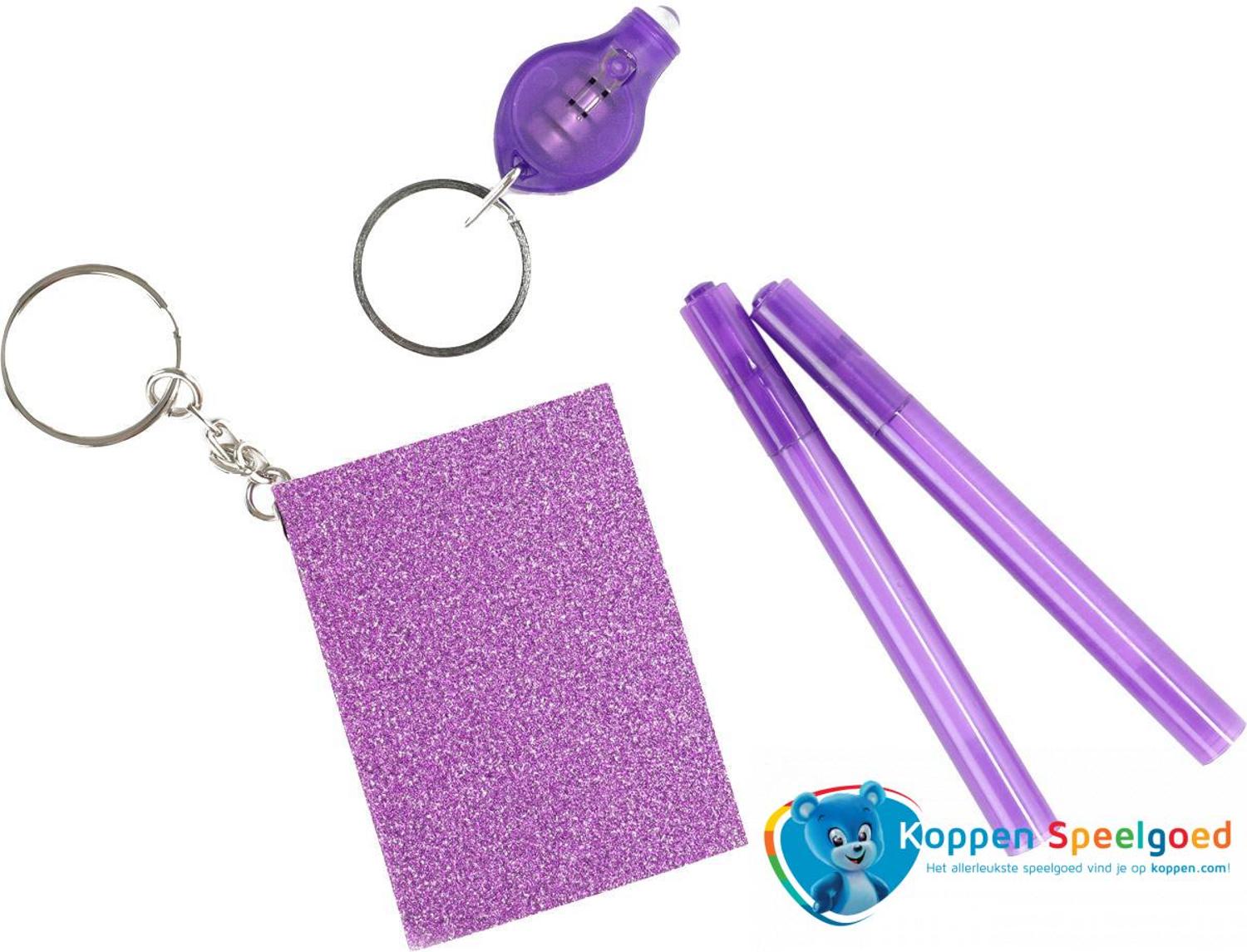 - Notitieboekje met UV lamp en geheimschrift pen, 6+
