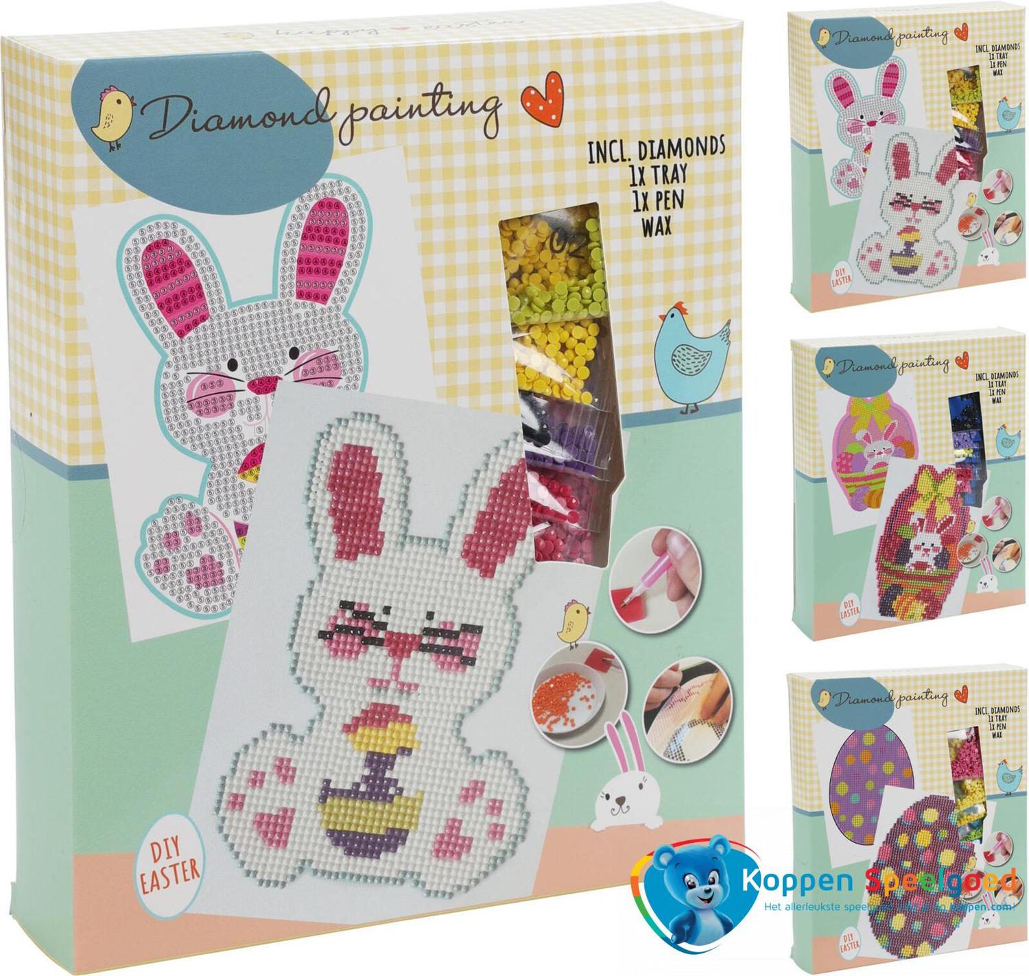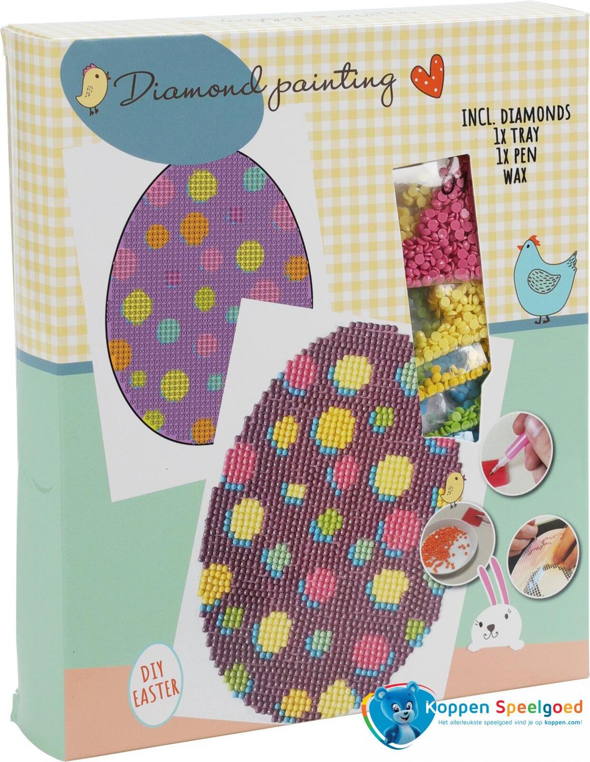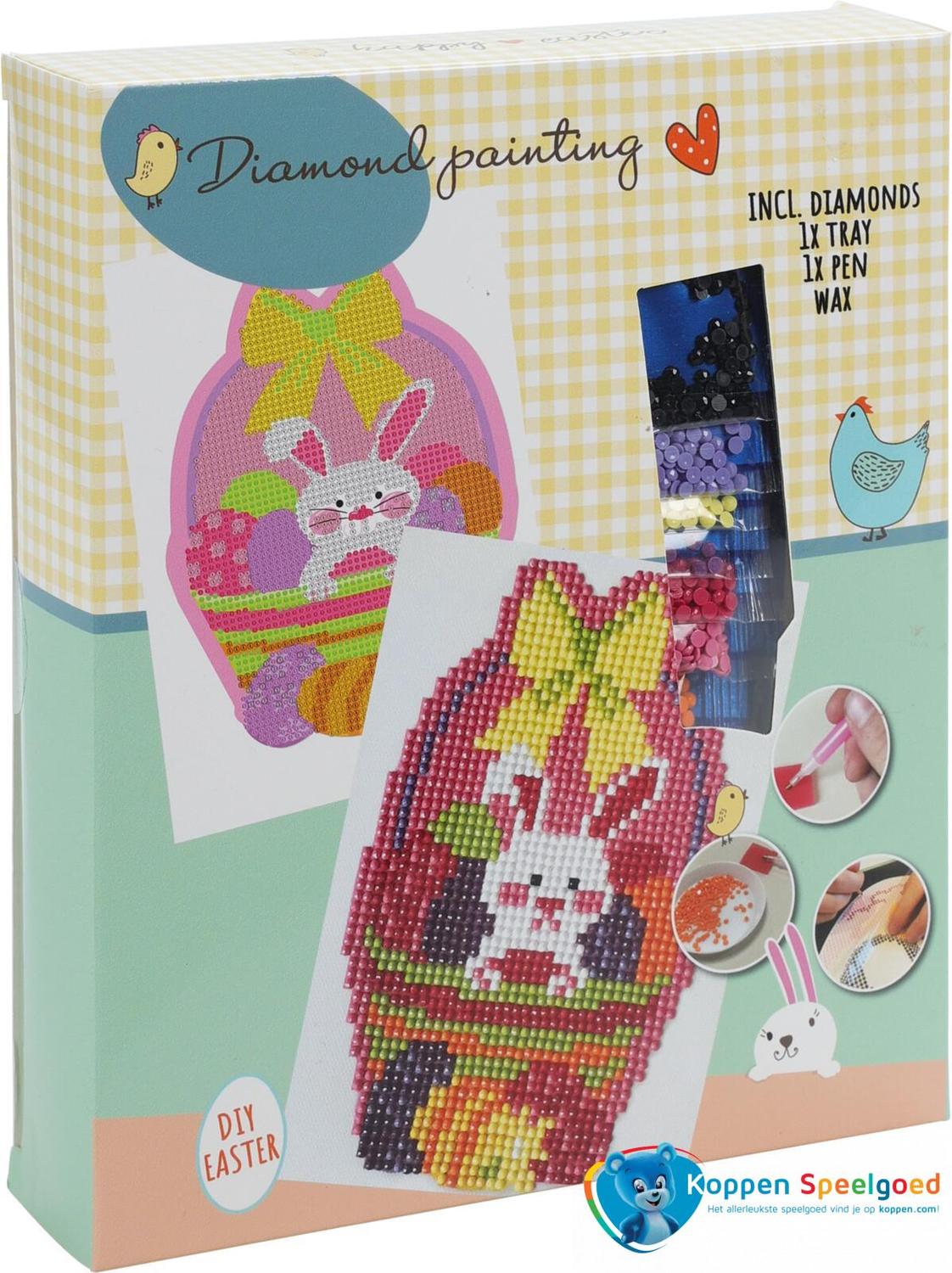 Maak de leukste creaties met deze Diamond painting set Pasen. Breng de kleine diamantjes aan op de ondergrond en er ontstaat een prachtig kunstwerk!
