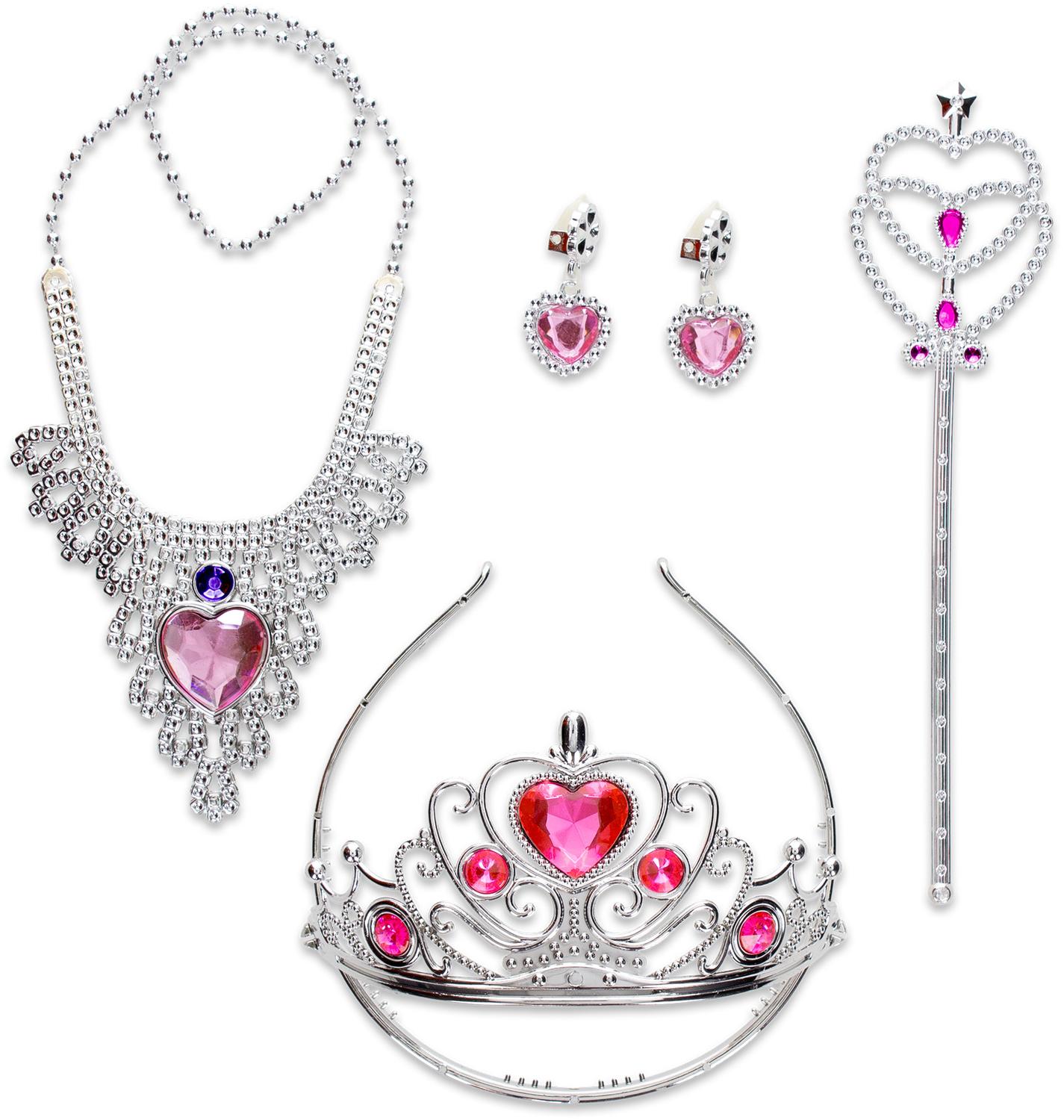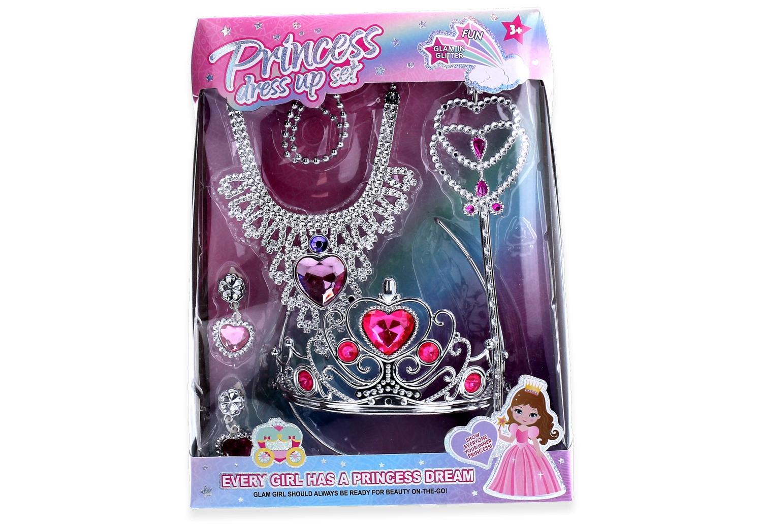 Wordt een echte prinses met deze leuke prinsessen sieraden set. Met een kroontje/diadeem, een luxe collier, een stafje en twee oorbellen. Voorzien van roze edelstenen.