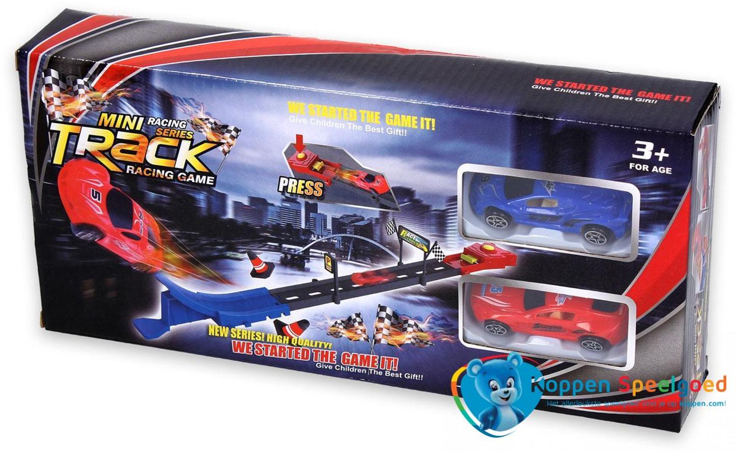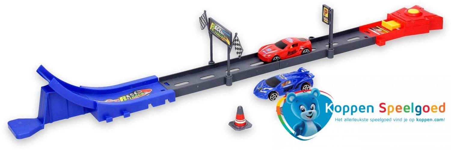 Racebaan met 2 afschietauto's en een schans om zelf in elkaar te zetten. Lanceren maar!