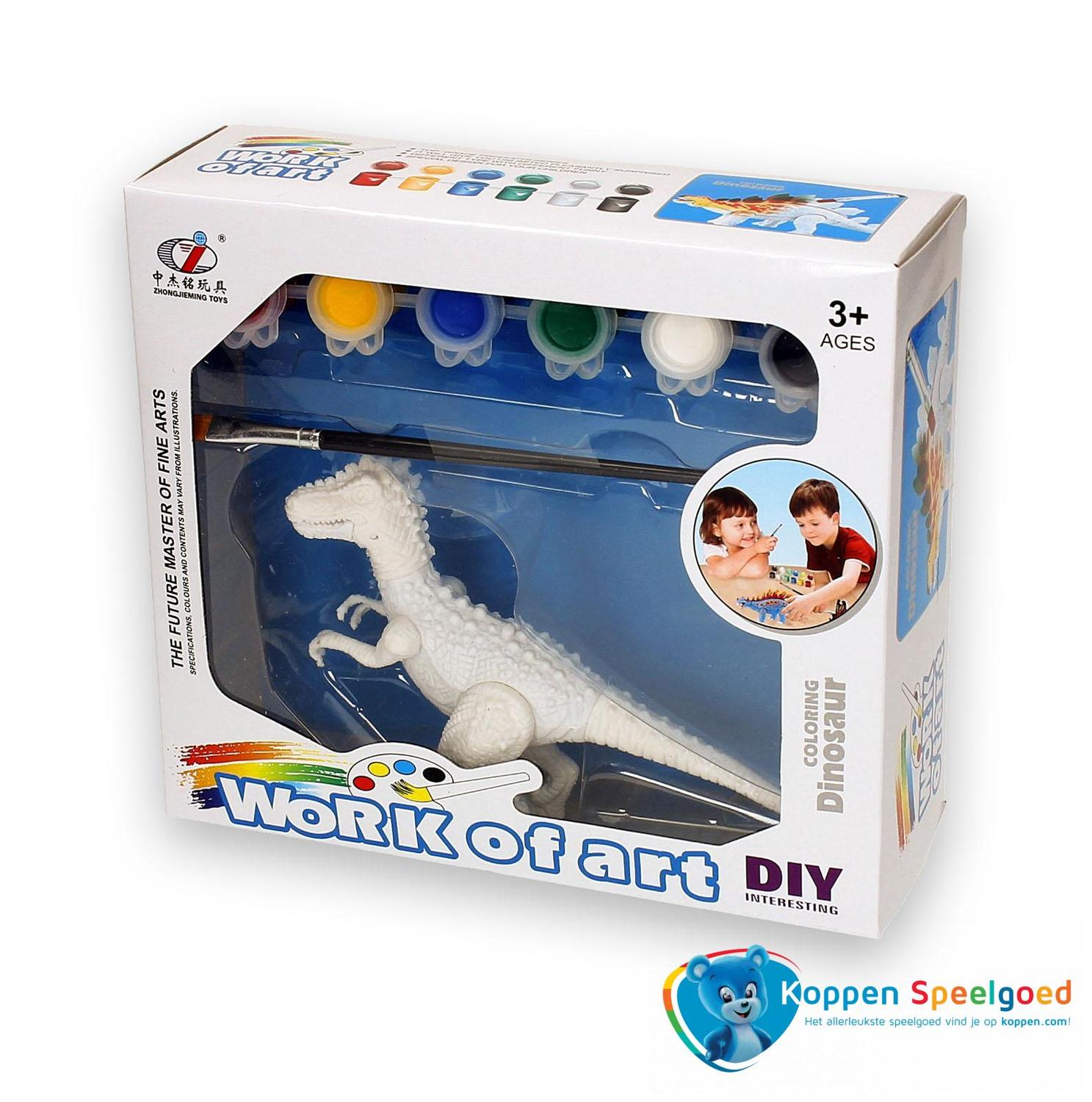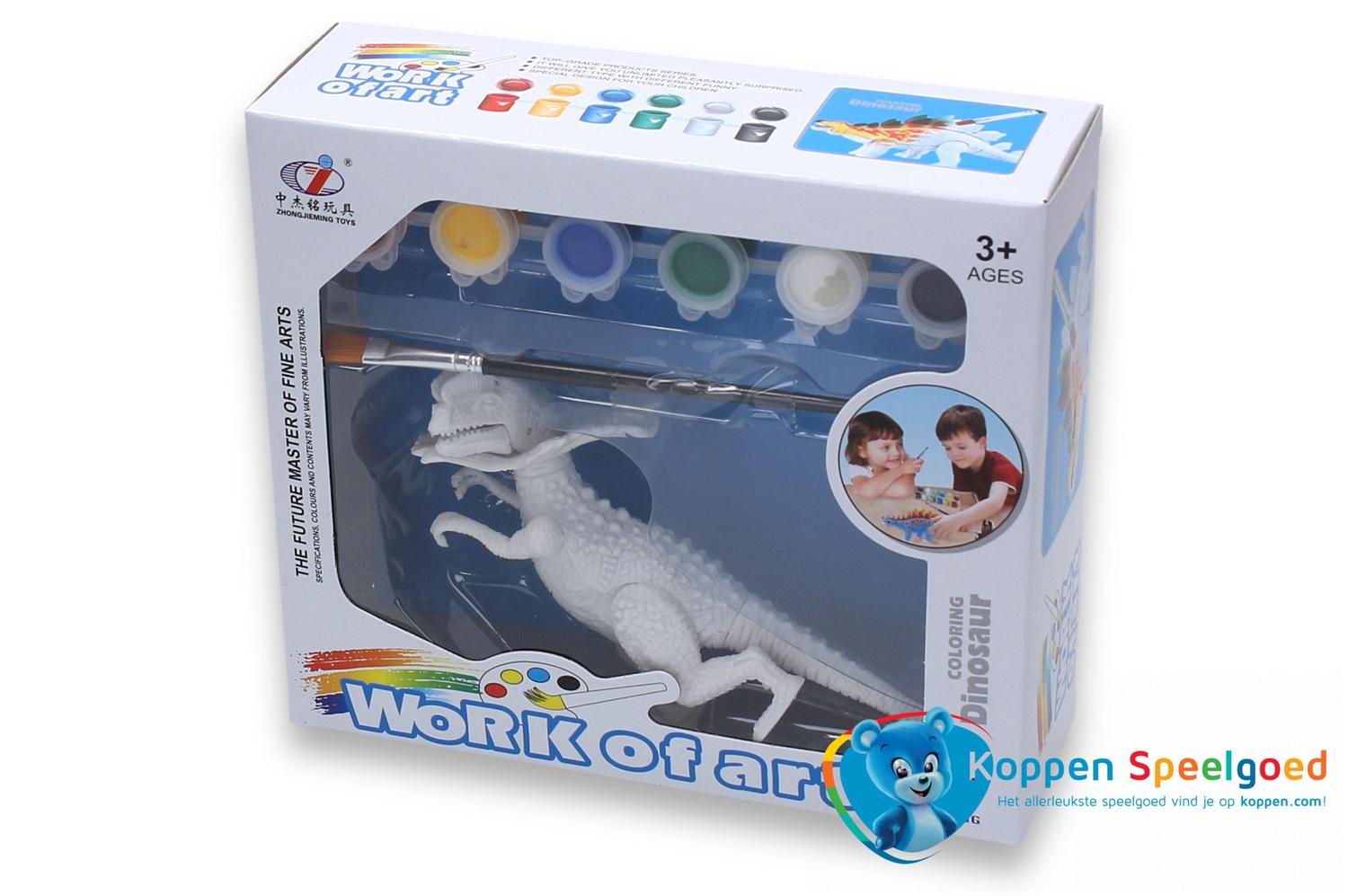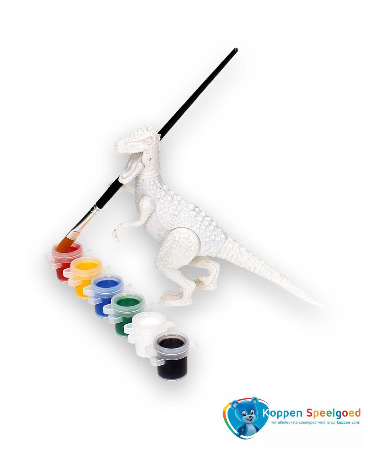 Schilder je eigen dinosaurus. Schilder zelf je eigen dinosaurus. In het doosje zit een dino, een penseel en zes potjes verf. Er zijn zes verschillende dino's en deze worden door elkaar geleverd. Spaar en beschilder ze alle zes! Geschikt voor kinderen vanaf drie jaar. Onder de categorie tekenen en schilderen staan meer vergelijkbare producten.