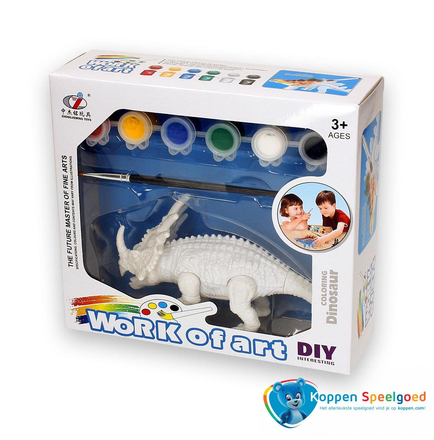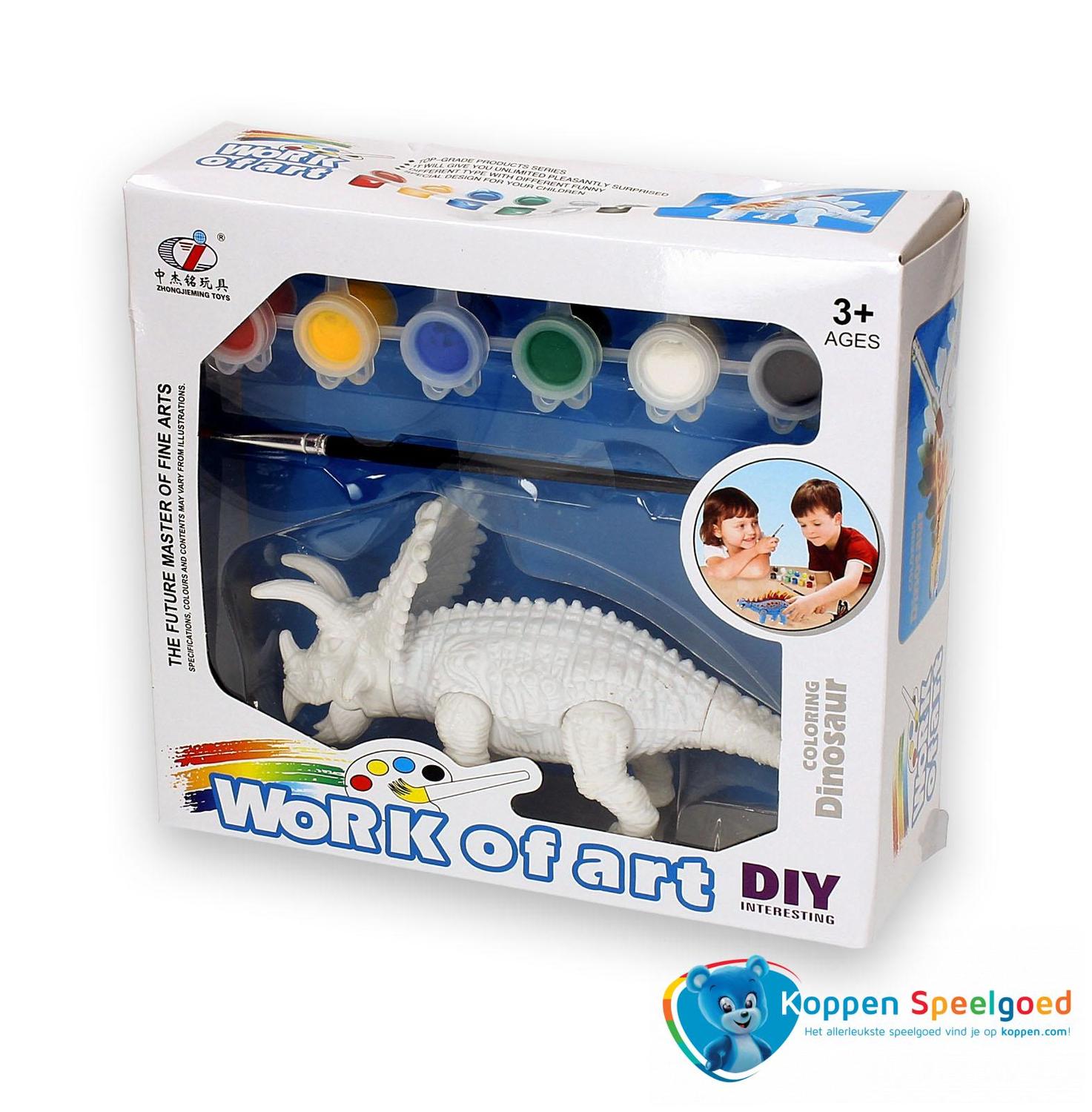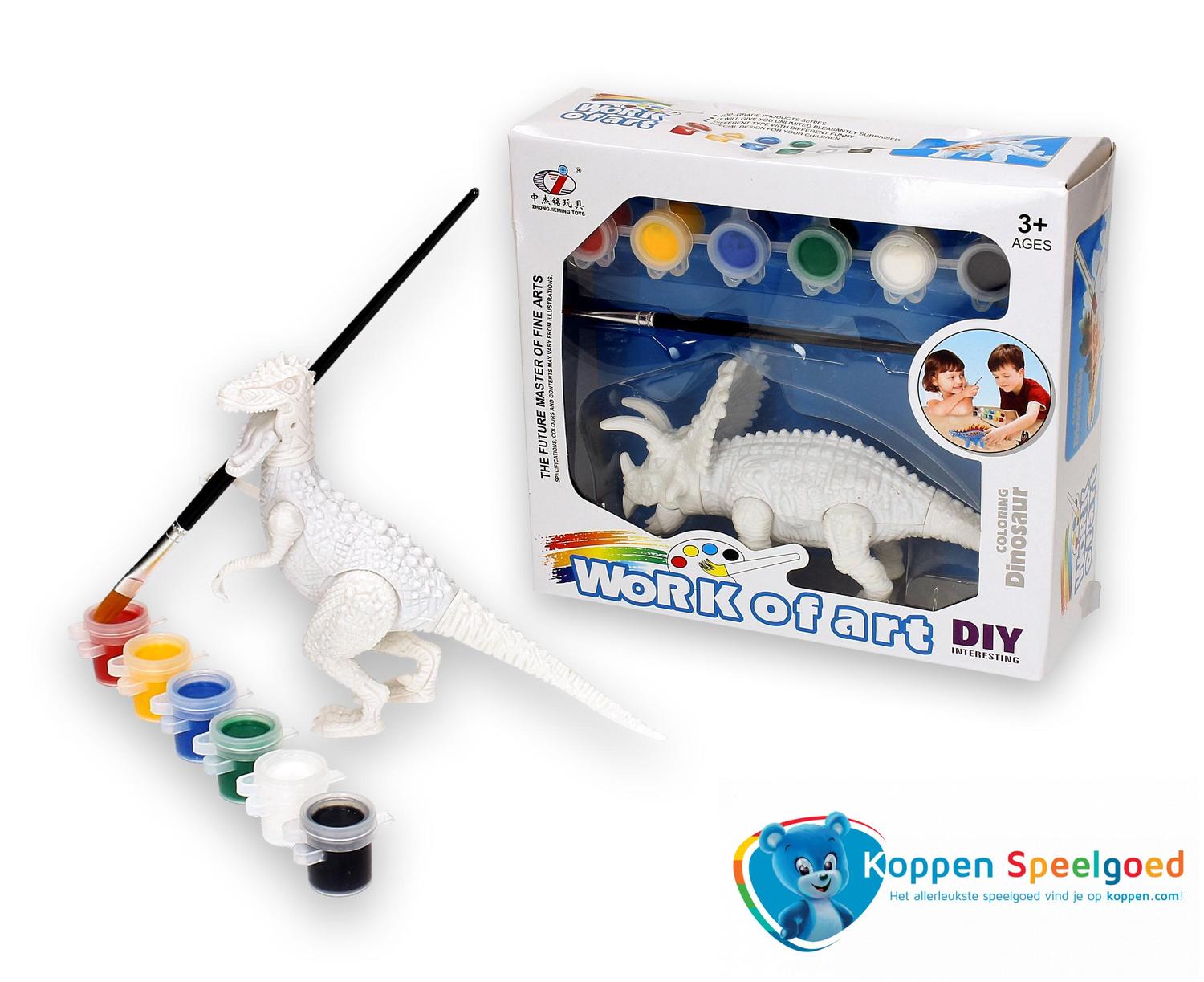 Schilder je eigen dinosaurus. Schilder zelf je eigen dinosaurus. In het doosje zit een dino, een penseel en zes potjes verf. Er zijn zes verschillende dino's en deze worden door elkaar geleverd. Spaar en beschilder ze alle zes! Geschikt voor kinderen vanaf drie jaar. Onder de categorie tekenen en schilderen staan meer vergelijkbare producten.