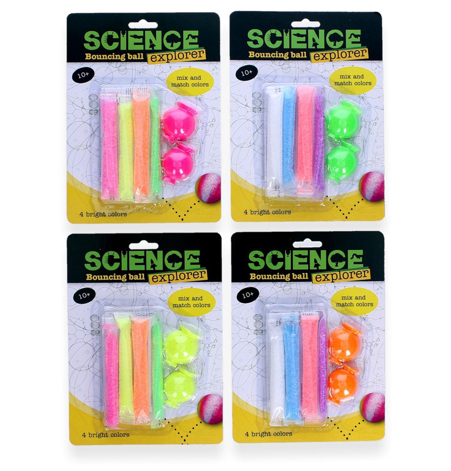 Science Explorer Maak je eigen stuiterbal. Maak zelf je eigen stuiterbal met deze set. Er zijn vier felle kleuren die je kan gebruiken. Volg de instructies op de achterkant en sta versteld van het resultaat. Geschikt voor kinderen vanaf acht jaar.