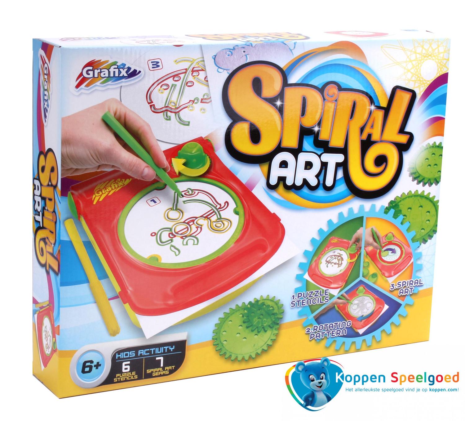 Maak prachtige spiraalkunst met deze grote set! De sjablonen met tandwielen laten je al draaiend de mooiste patronen maken. Wissel af met de verschillende kleuren van pennen en viltstiften die meegeleverd worden. De speciale sjabloon kaarten vormen leuke puzzels. Compleet met houder voor de spiralen, sjablonen, papier en instructies.
