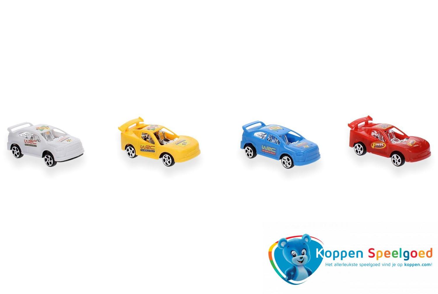 Gekleurde sport auto. Verkrijgbaar in de kleuren wit, geel, blauw en rood.