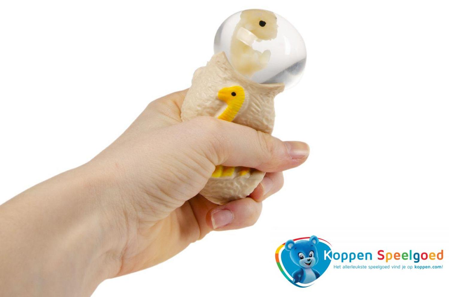 Squeeze ei dino, ideaal voor iedereen die ervan houdt om lekker in een dino-ei te knijpen. Knijp je op de juiste plek en hard genoeg, dan lijkt het ei open te barsten en komt er een klein dinootje uit. Laat je los dan floept hij weer naar binnen. Leuk als stressballetje, als goocheltruc of zomaar voor de fun!