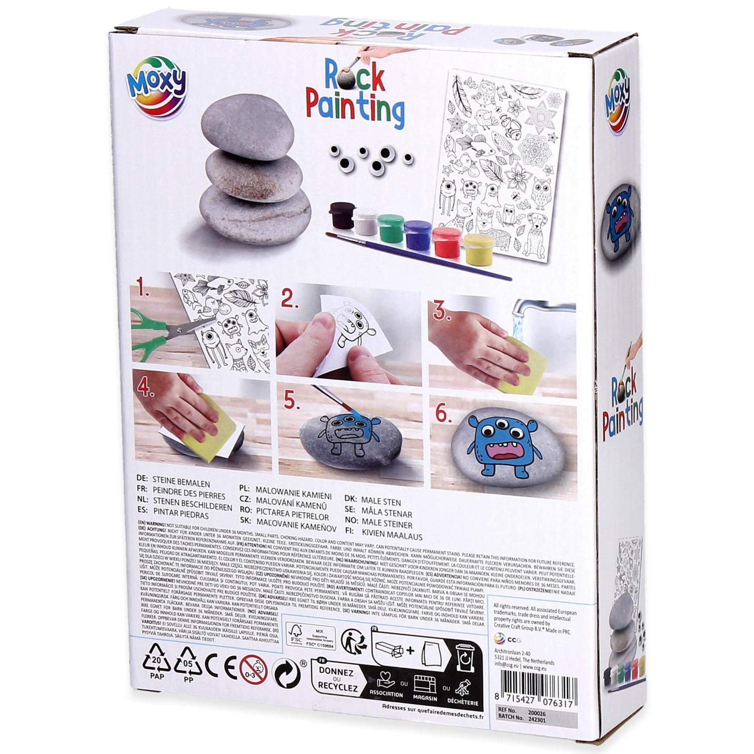 Laat je creativiteit stromen! Deze knutselset bevat gladde stenen, verf en een penseel om je eigen kunstwerkjes te maken. Leuk voor binnen en buiten.