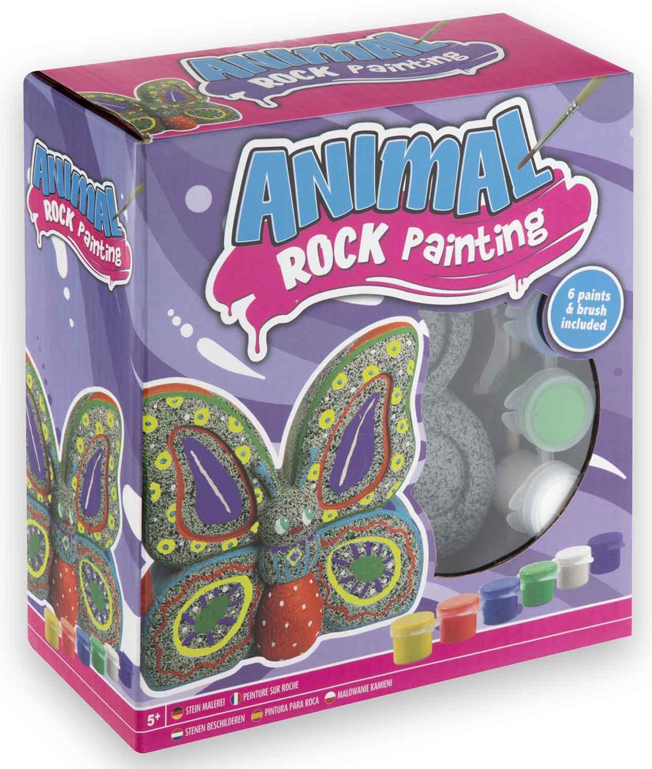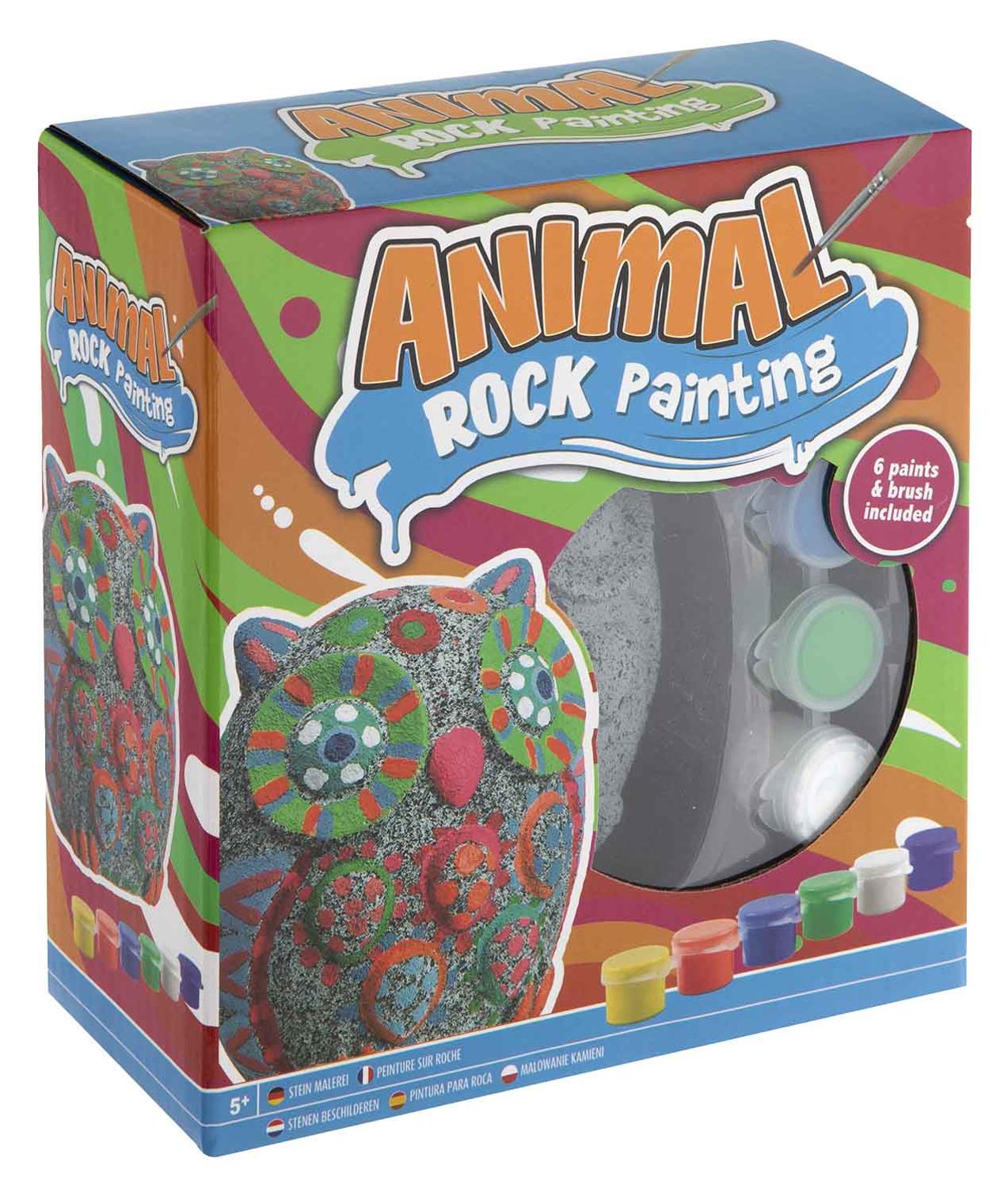 Versier je eigen steen met de 6 meegeleverde verfkleurtjes en het kwastje.