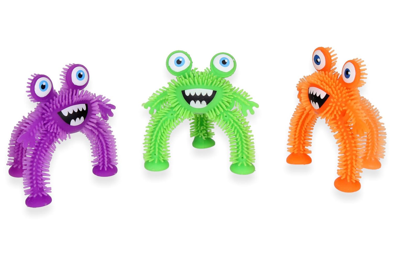 Dit vrolijke monster kun je ver oprekken, zo elastisch is hij. Je kunt hem neerzetten op zijn pootjes.