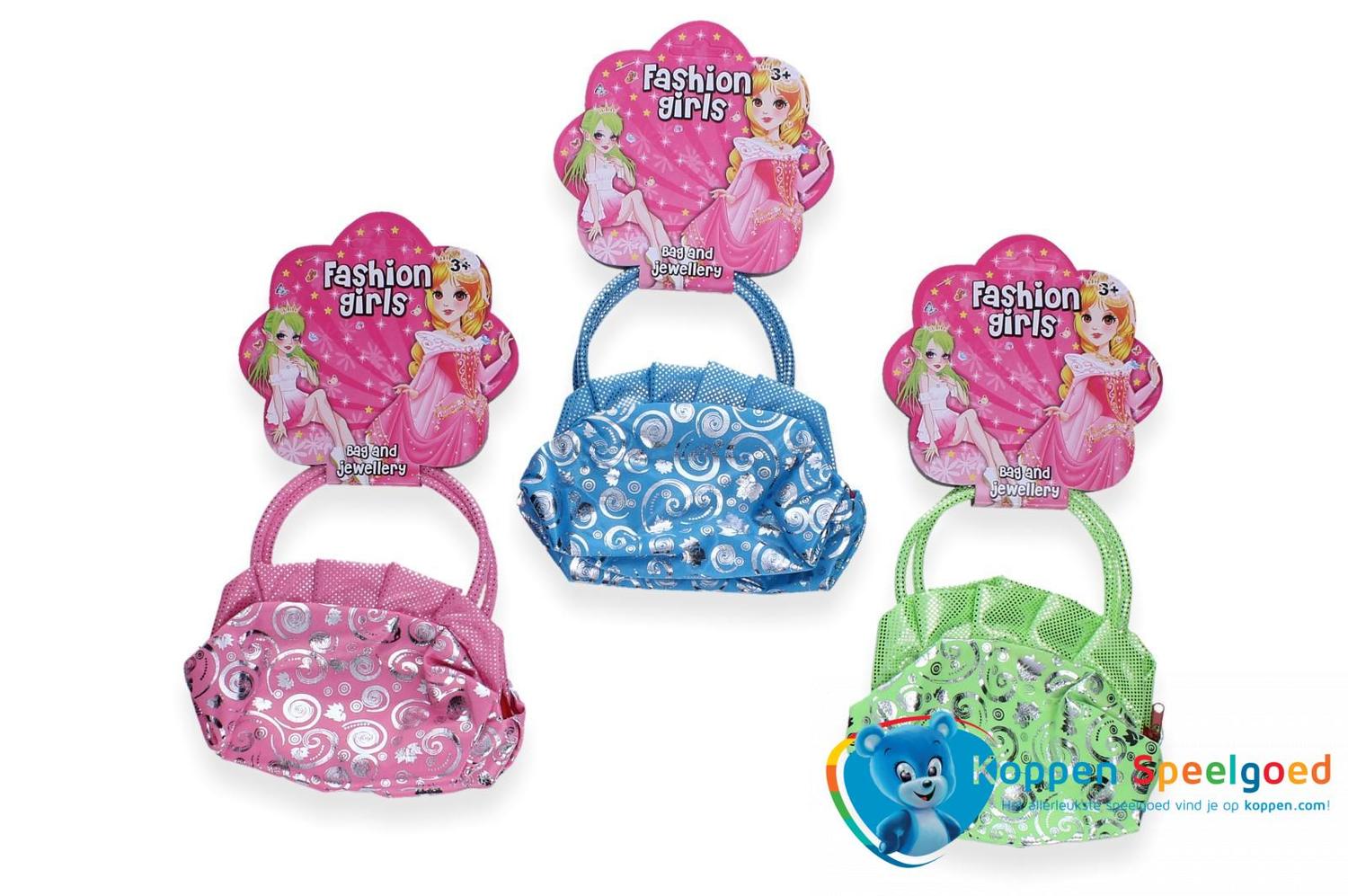 Leuk handtasje met een glitter print. Het tasje is rijk versierd.