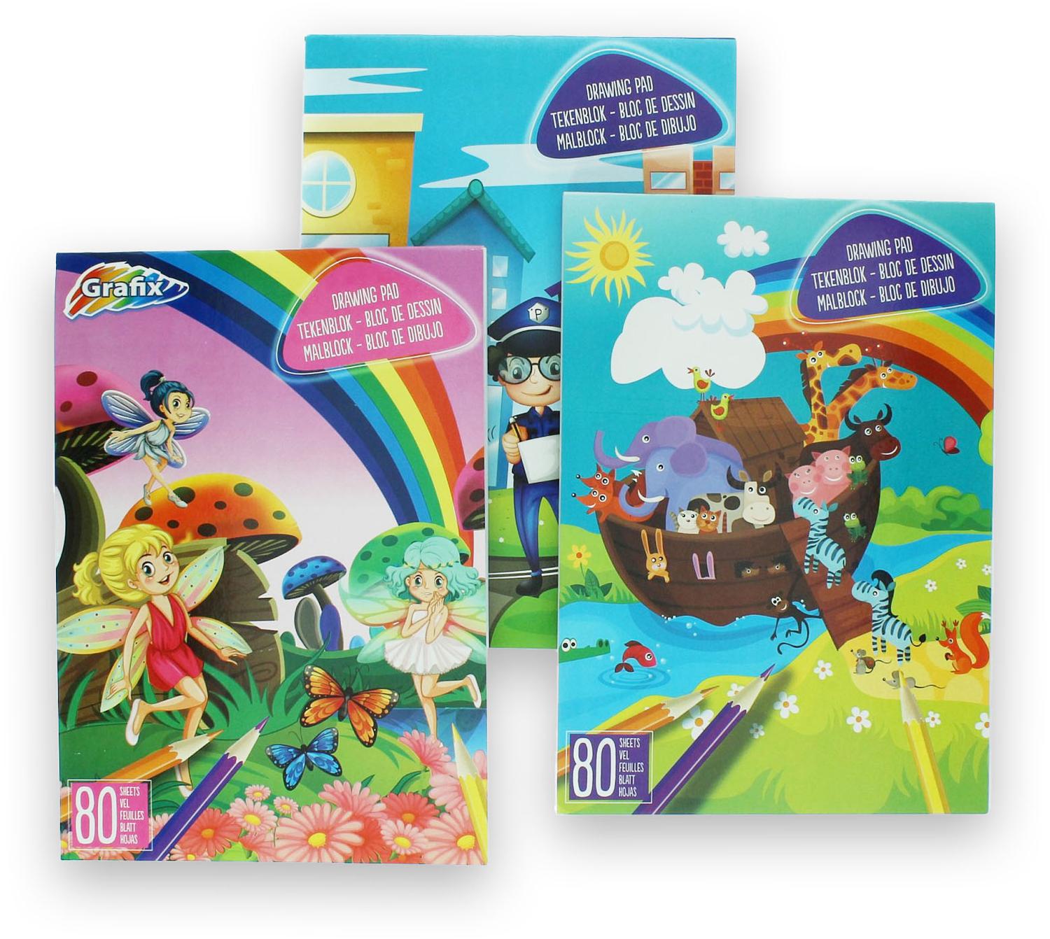Tekenblok A4 80 bladzijde. Een tekenblok met 80 pagina's waarop je zelf tekeningen kan maken. Er zijn verschillende blokken en deze worden door elkaar geleverd. Laat zien dat jij de nieuwe Leonardo da Vinci bent. Geschikt voor tekenen en schilderen.