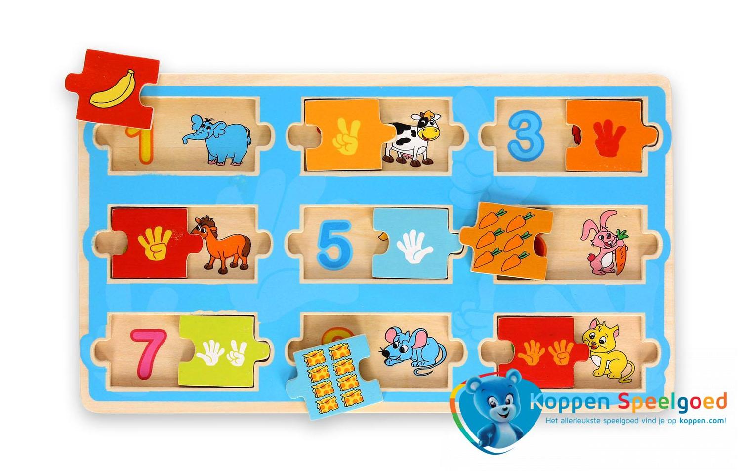 - Tellen met dieren schuifpuzzel, hout, 18m+