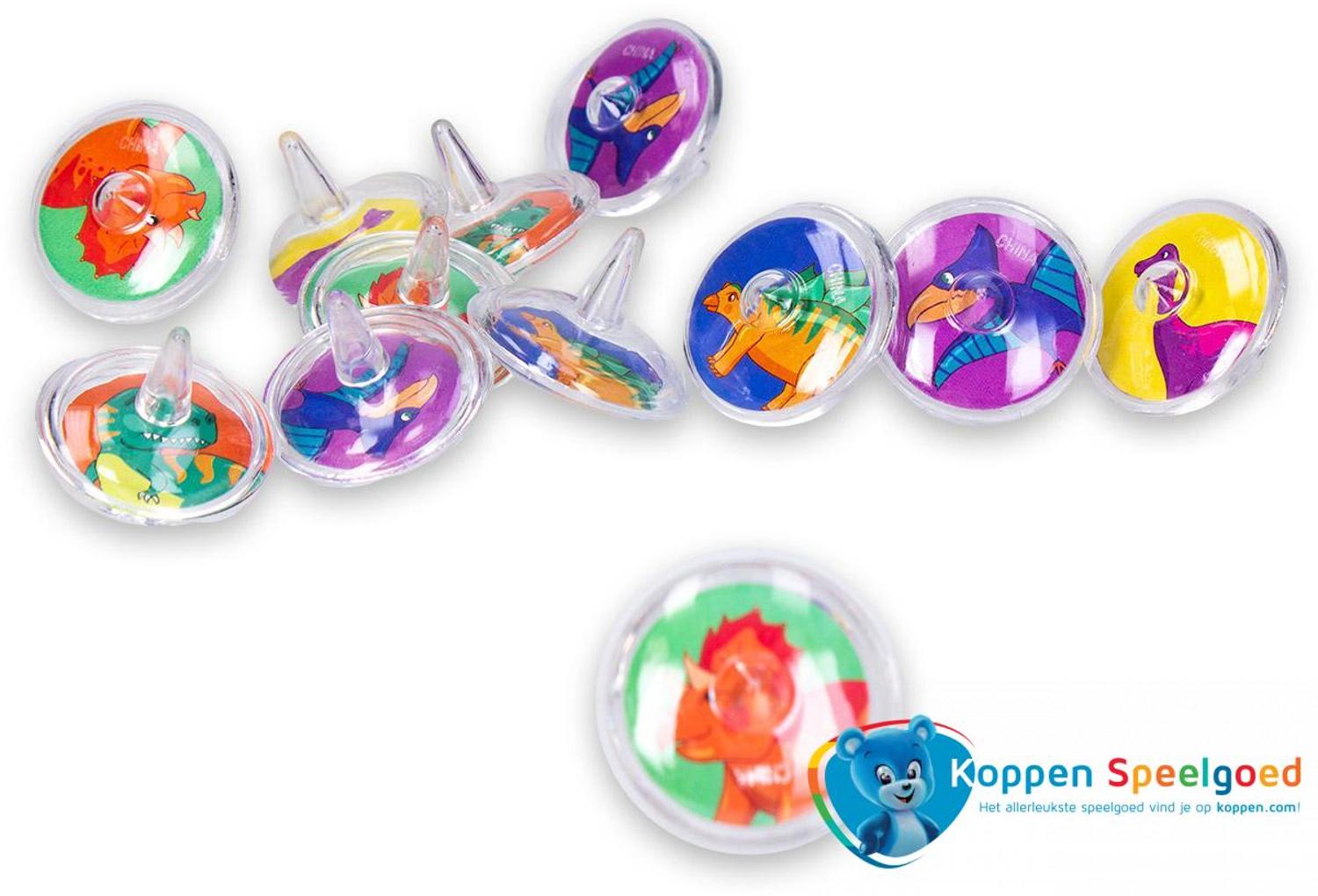 Deze kleine, transparante tolletjes hebben een opdruk van een dino.