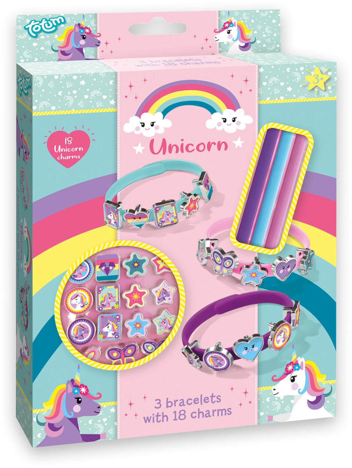 ToTum eenhoorn bedelarmbandjes set. Een set met drie armbanden en achttien bedels om zelf de mooiste sieraden te maken.