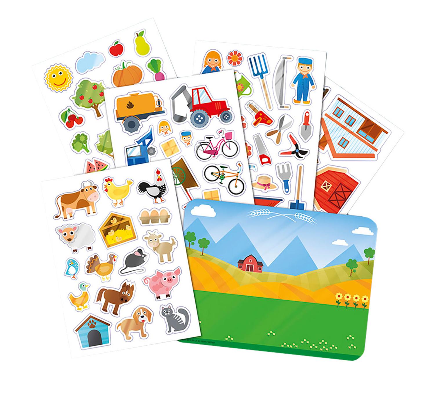 ToTum boerderij raamstickers. In dit pakket zitten meer dan 75 raamstickers van allerlei objecten, figuren en dieren die je tegenkomt op de boerderij. Maak je eigen verhaal met deze leuke stickers! Leuk voor in de auto, op een raam thuis of in de knutselhoek op school. Bovendien zijn ze makkelijk te verwijderen en kunnen ze weer opnieuw opgeplakt worden. Bevat vijf stickervellen en een decor. Onder de categorie stickers en knutselen staan meer vergelijkbare producten.