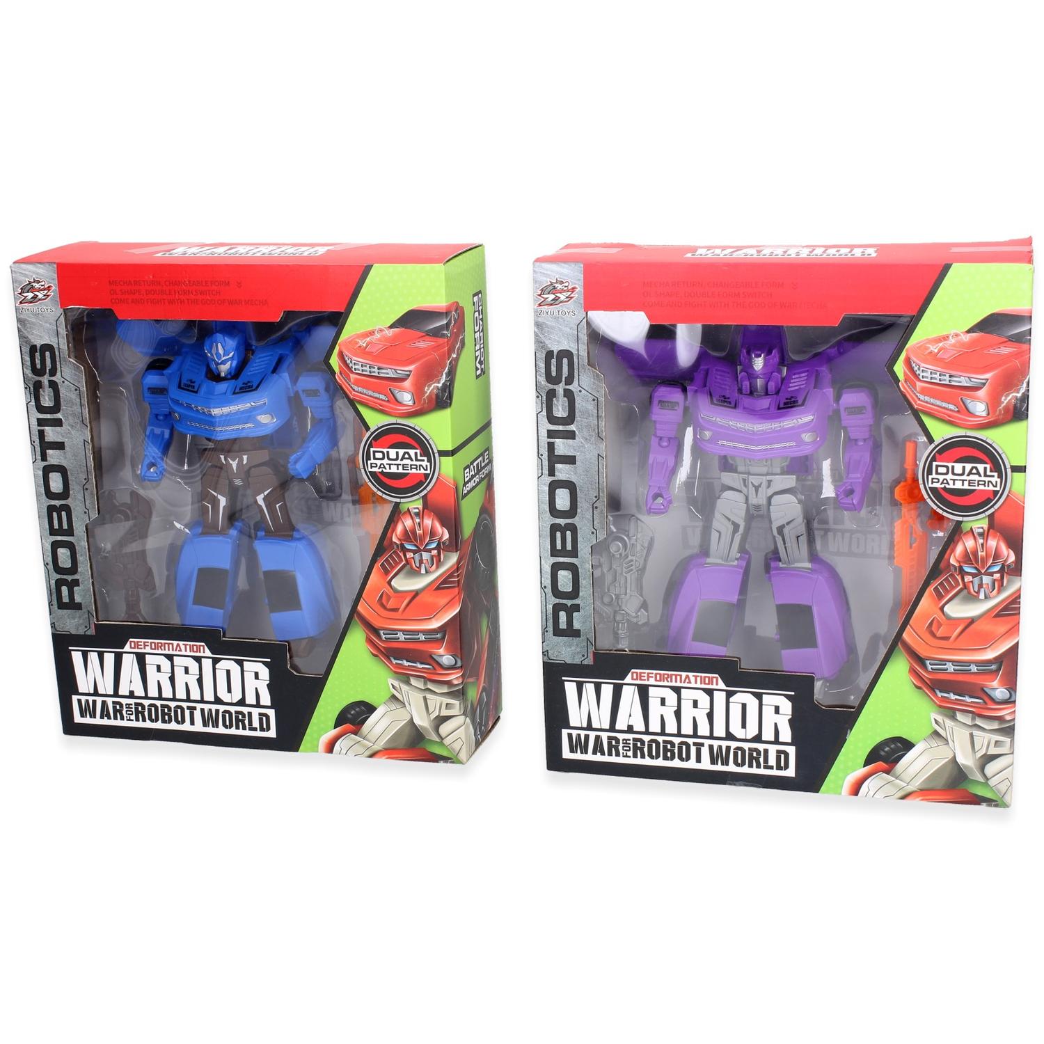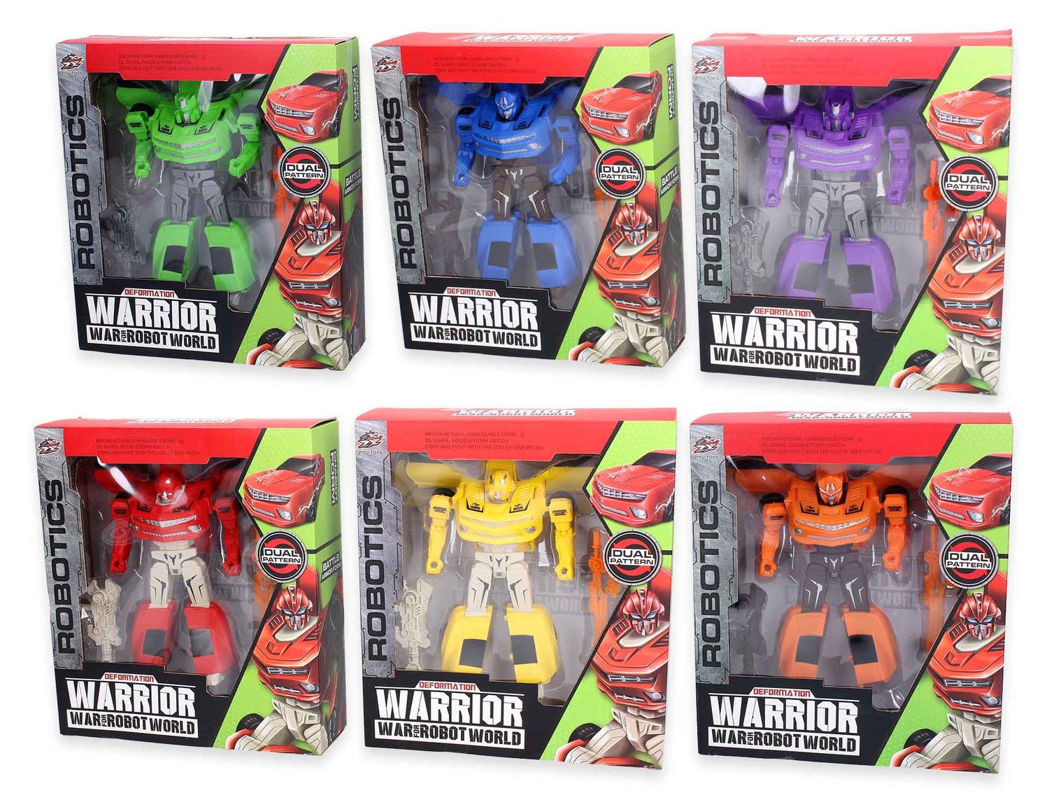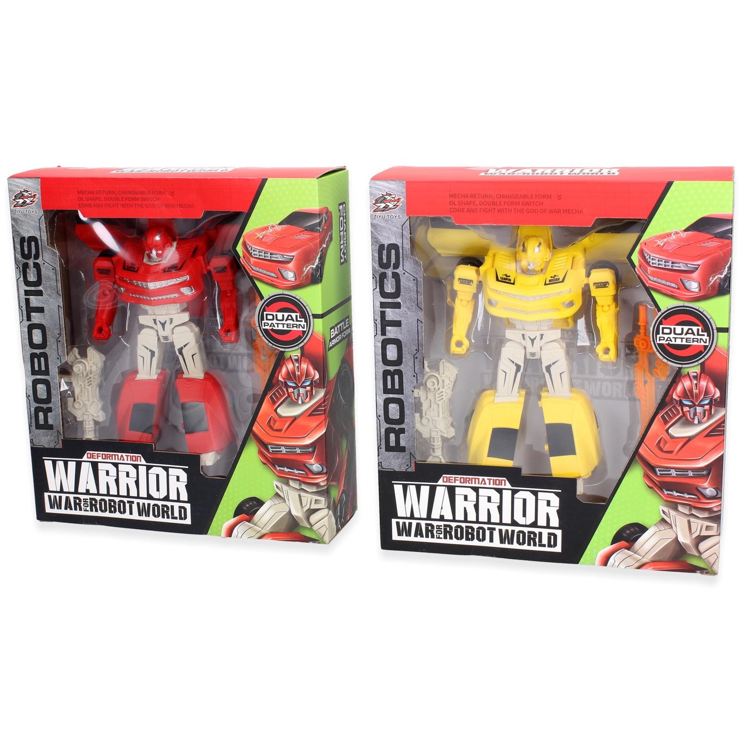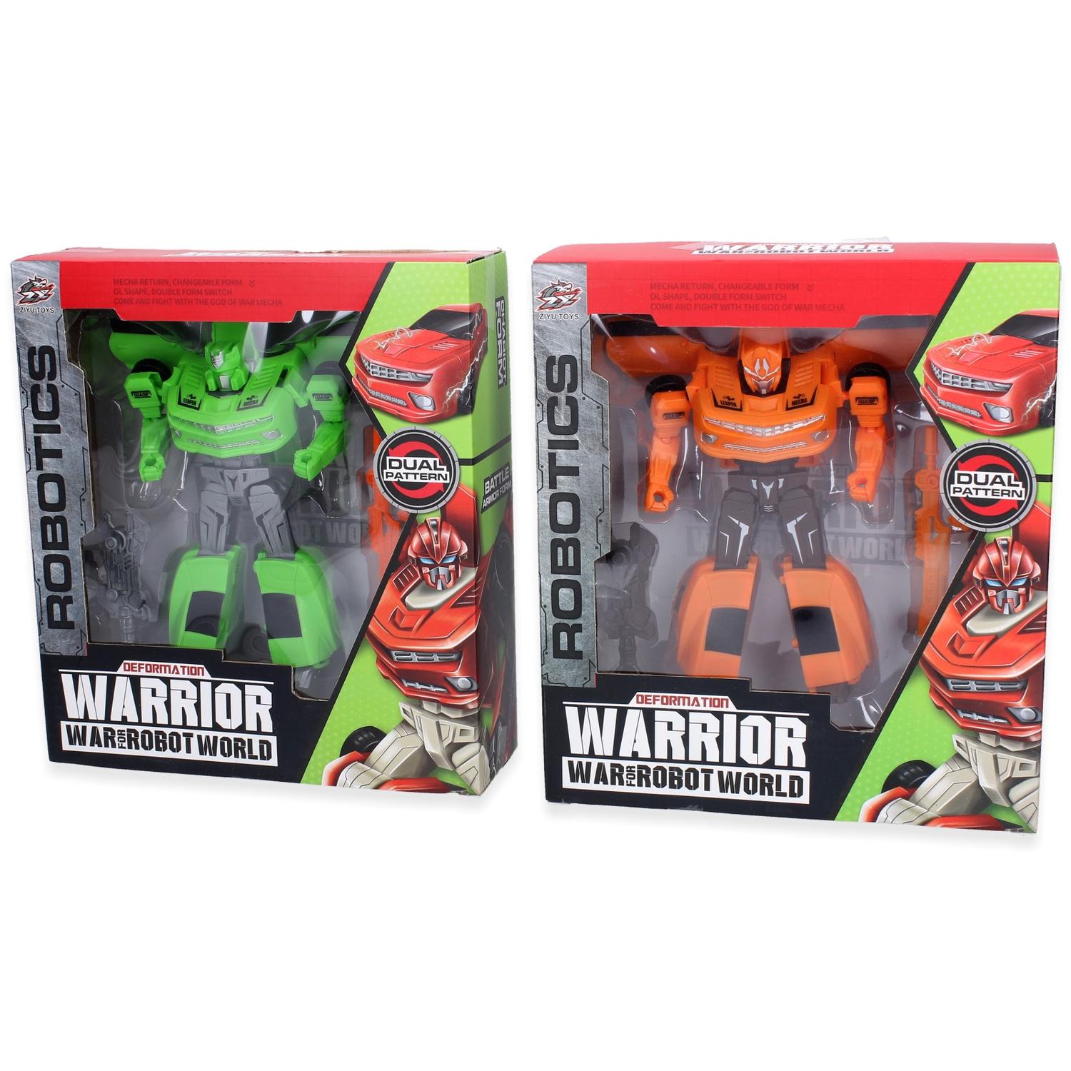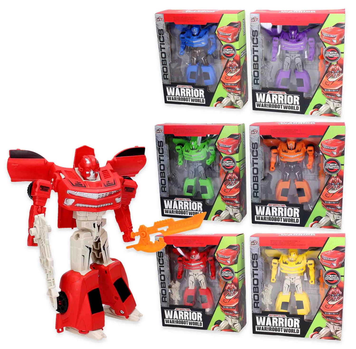 Transformerende robot auto is een stoere speelset waarin auto en robot samenkomen. Met een eenvoudige beweging verandert de sportauto in een krachtige robotkrijger. Elke robot is voorzien van een wapenaccessoire en is verkrijgbaar in meerdere kleuren (rood, blauw, groen, geel, oranje en paars). Dit speelgoed stimuleert fantasierijk spel, rollenspellen en avonturen vol actie. Geschikt voor kinderen vanaf 3 jaar.