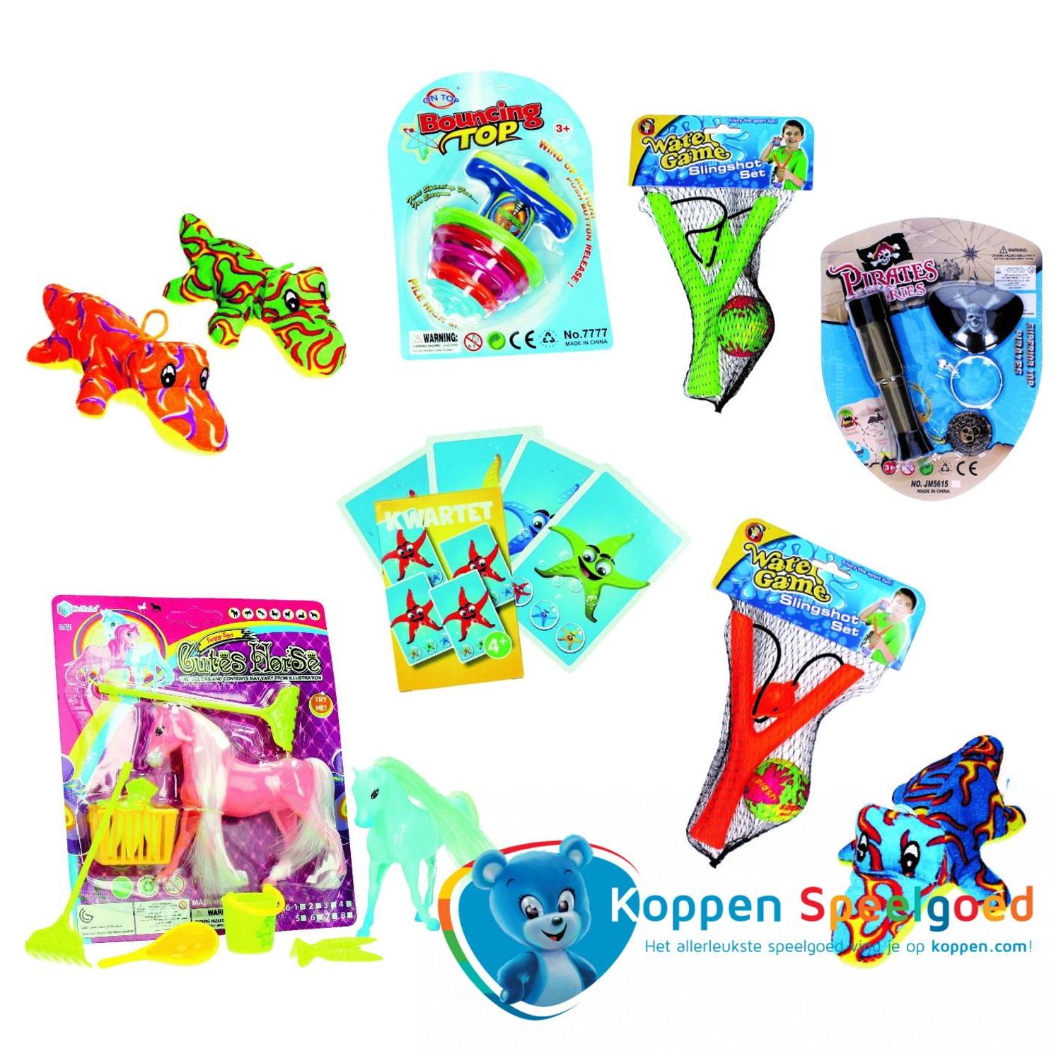 Verrassingsbox met 120 grote speeltjes. In deze verrassingsbox zitten 120 speeltjes. De inhoud van de boxen wisselt iedere keer. Je hoeft dus niet zelf naar speeltjes te zoeken, wij hebben al een selectie voor jullie gemaakt.