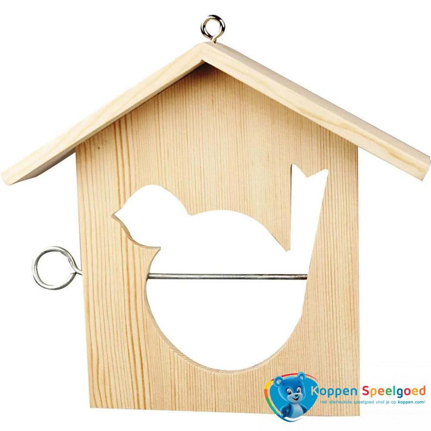 Mooi vogelvoederhuisje om zelf te decoreren. Gemaakt van onbehandeld blank hout. De stang is van metaal.