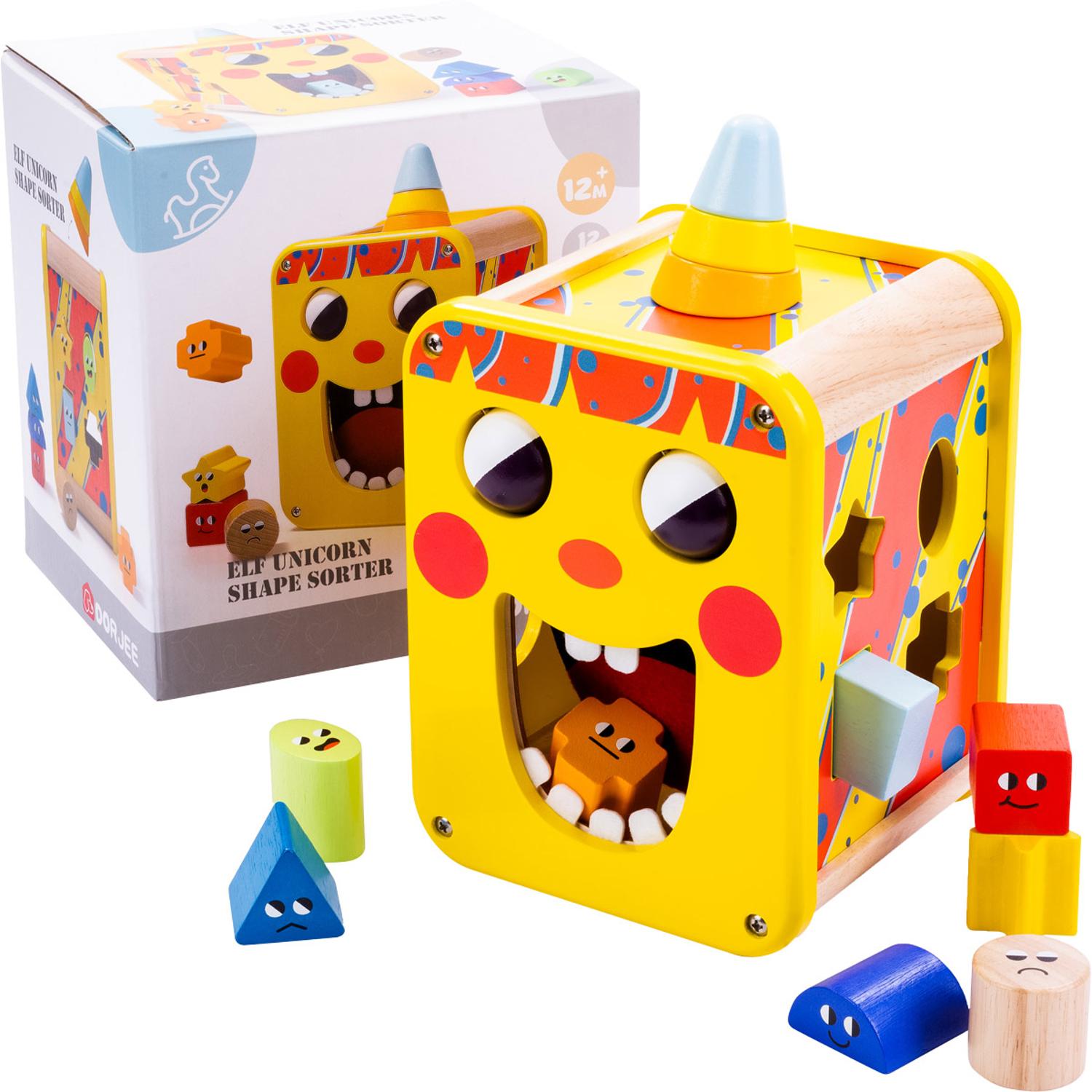 Vormenstoof bevat 8 blokken met magnetische stapelringen en een zachte mond om de blokken gemakkelijk te verwijderen. De oprolbare ogen zorgen voor extra plezier! Gemaakt van hoogwaardig massief hout.