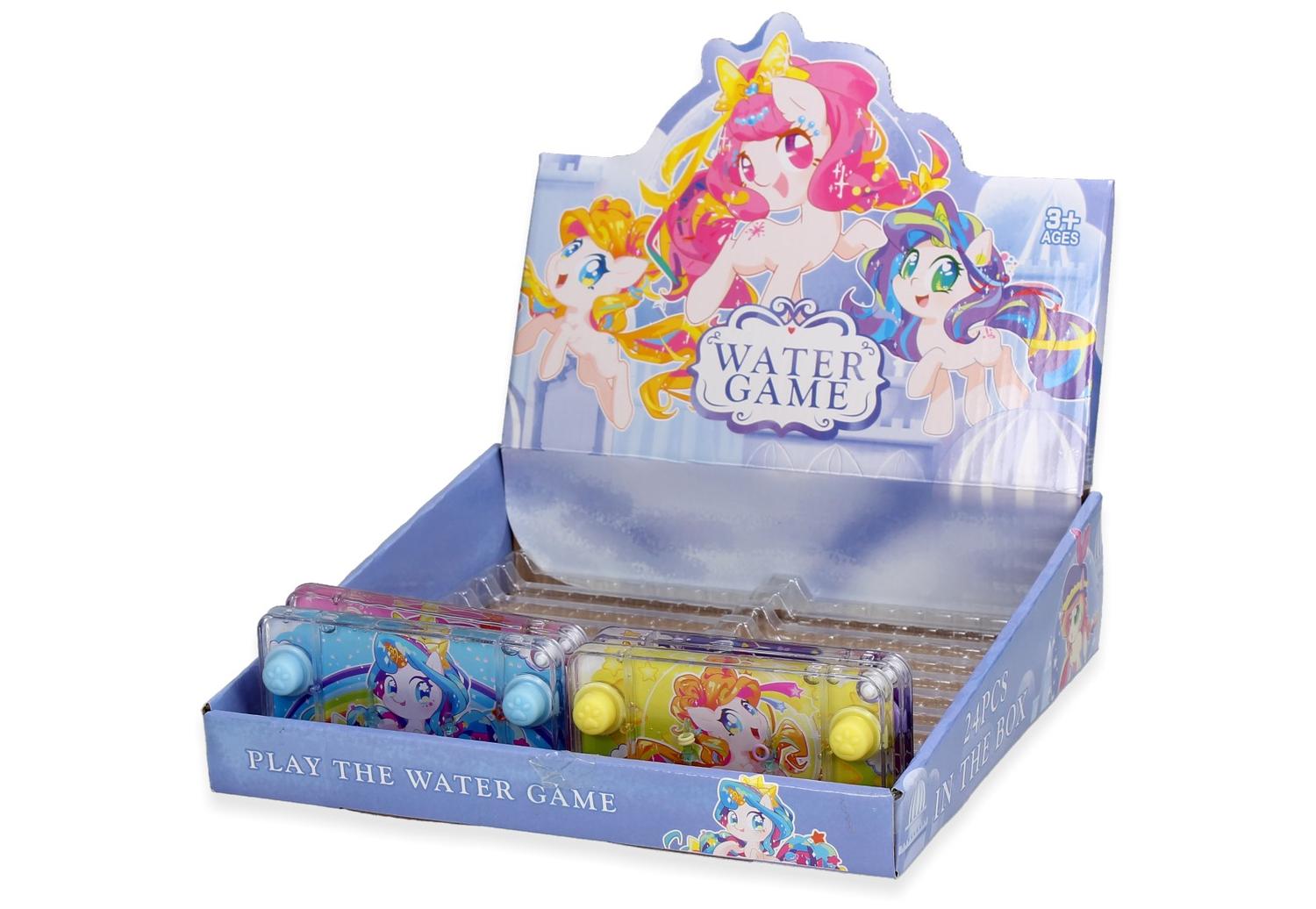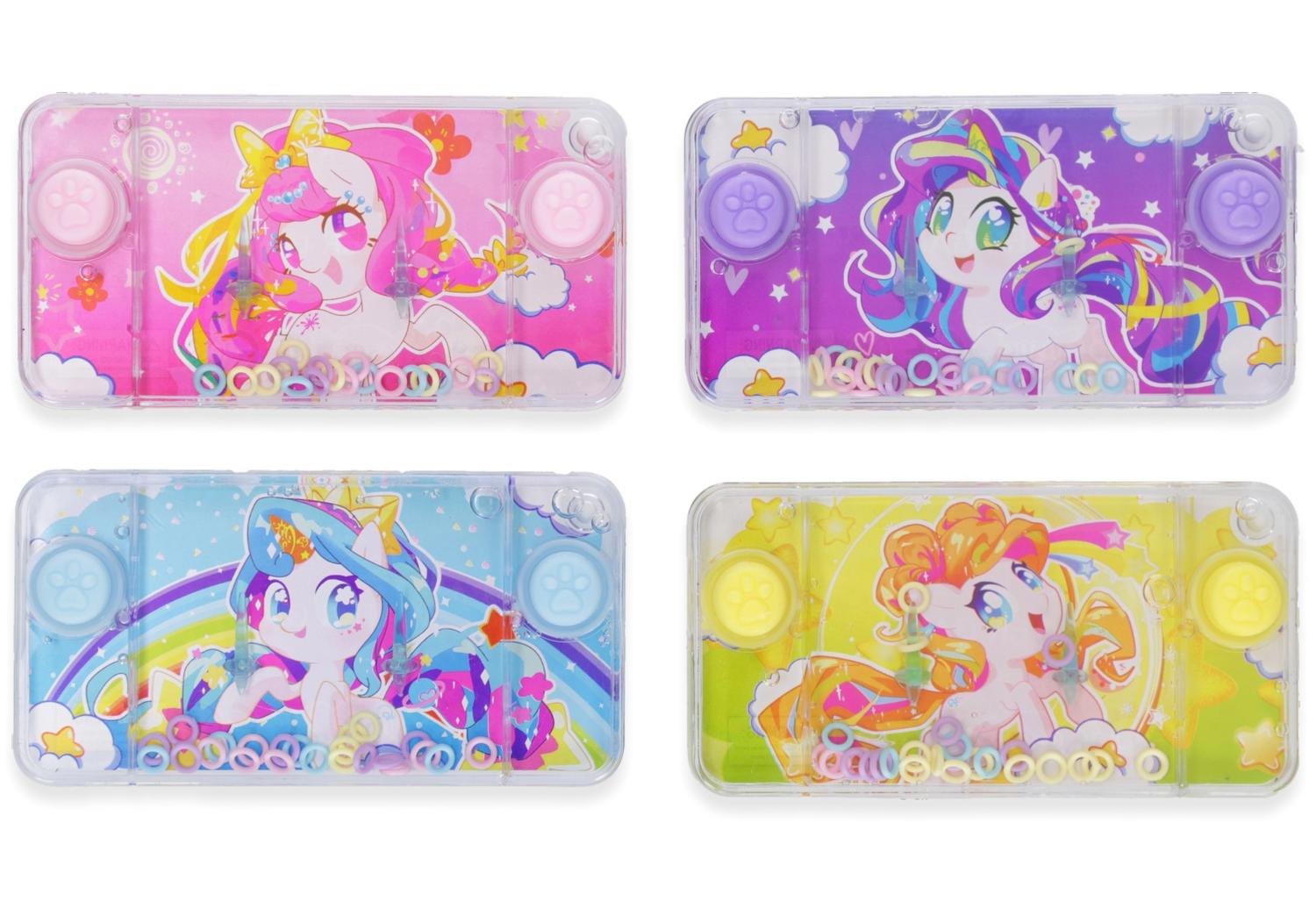 Populair handspel in sprookjesachtig eenhoornthema, gevuld met water en kleurrijke ringen.